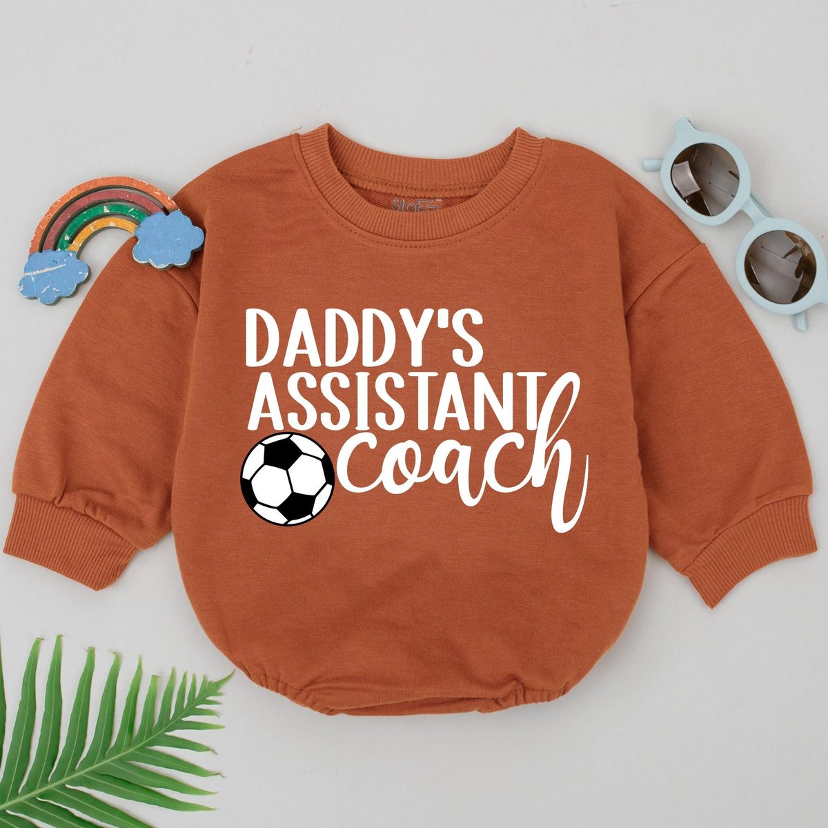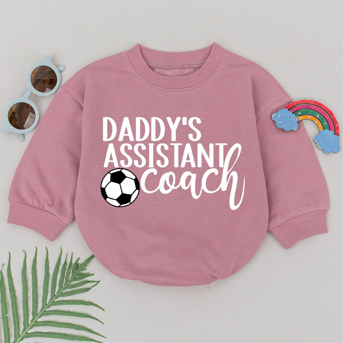 Daddy’s Assistant Coach Romper Fall Baby Clothes Retro Soccer Outfits Football Season Bubble Romper