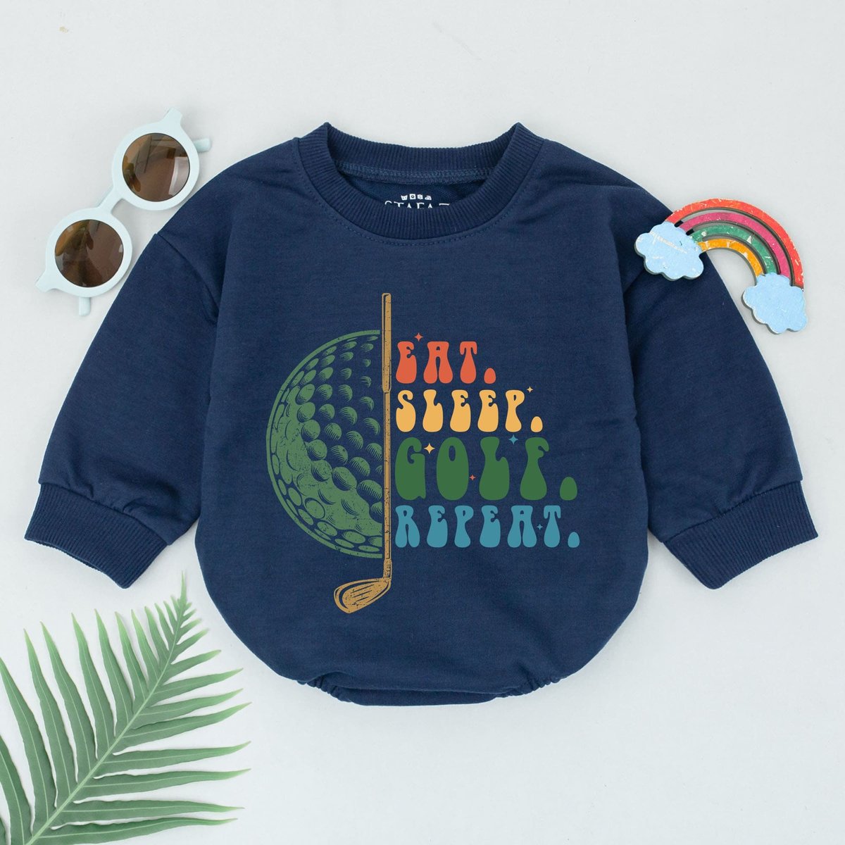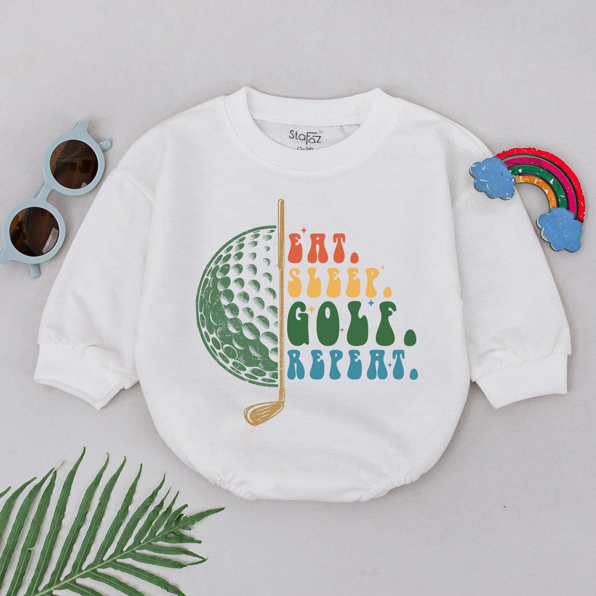 Eat Sleep Golf Repeat Romper Retro Future Golfer Buddy Bodysuit Baby Announcement Golf Lover Outfit