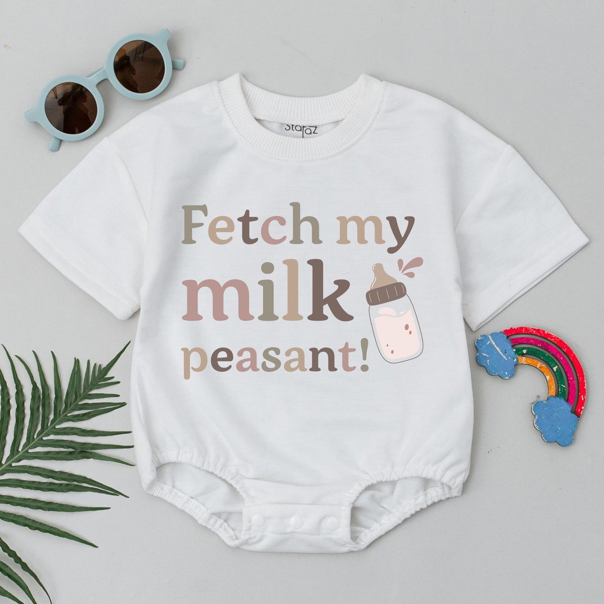 Fetch My Milk Peasant Romper Cute Milk Baby Bodysuit Newborn Outfit Baby Shower Gift Infant Summer C
