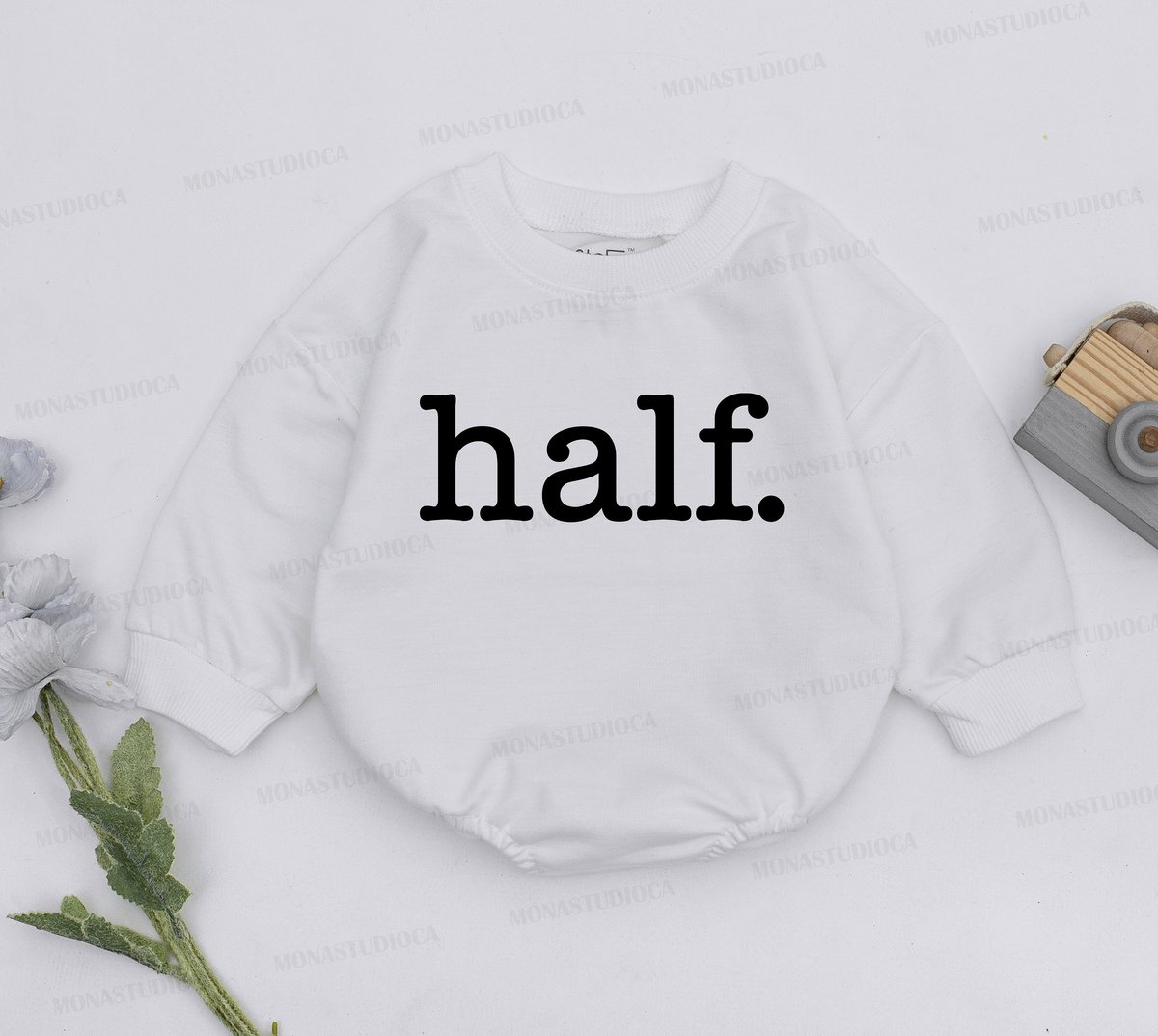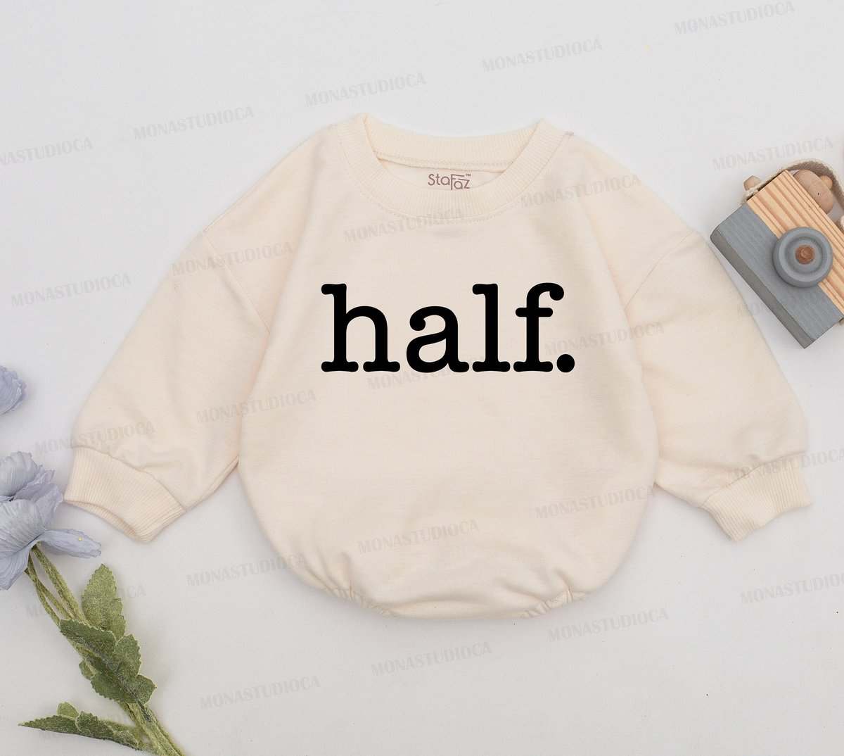 Half Birthday Baby Romper Half Way To One Romper 6 Months Birthday Gift Natural Birthday Outfit Newb