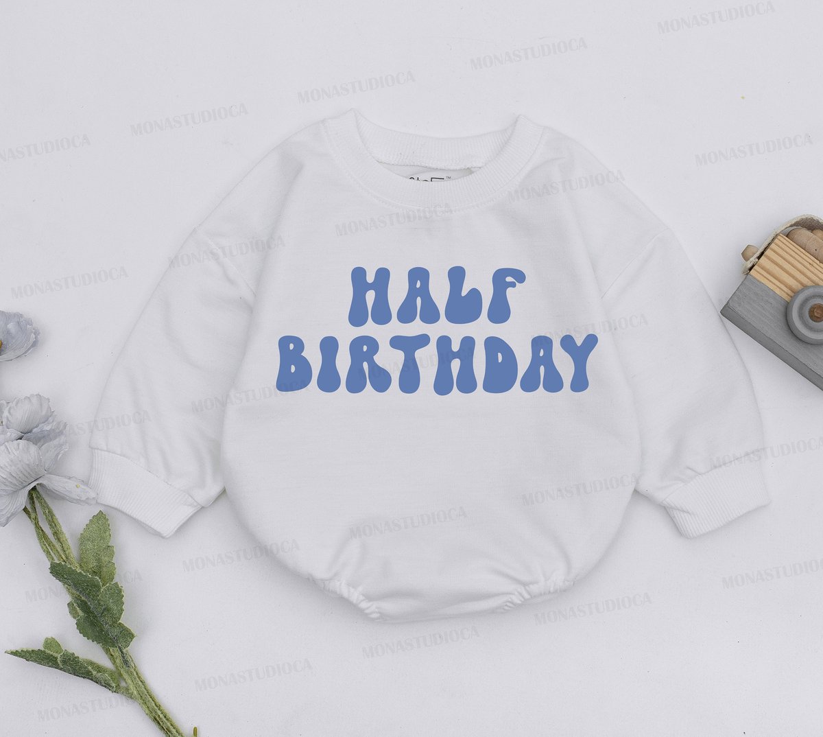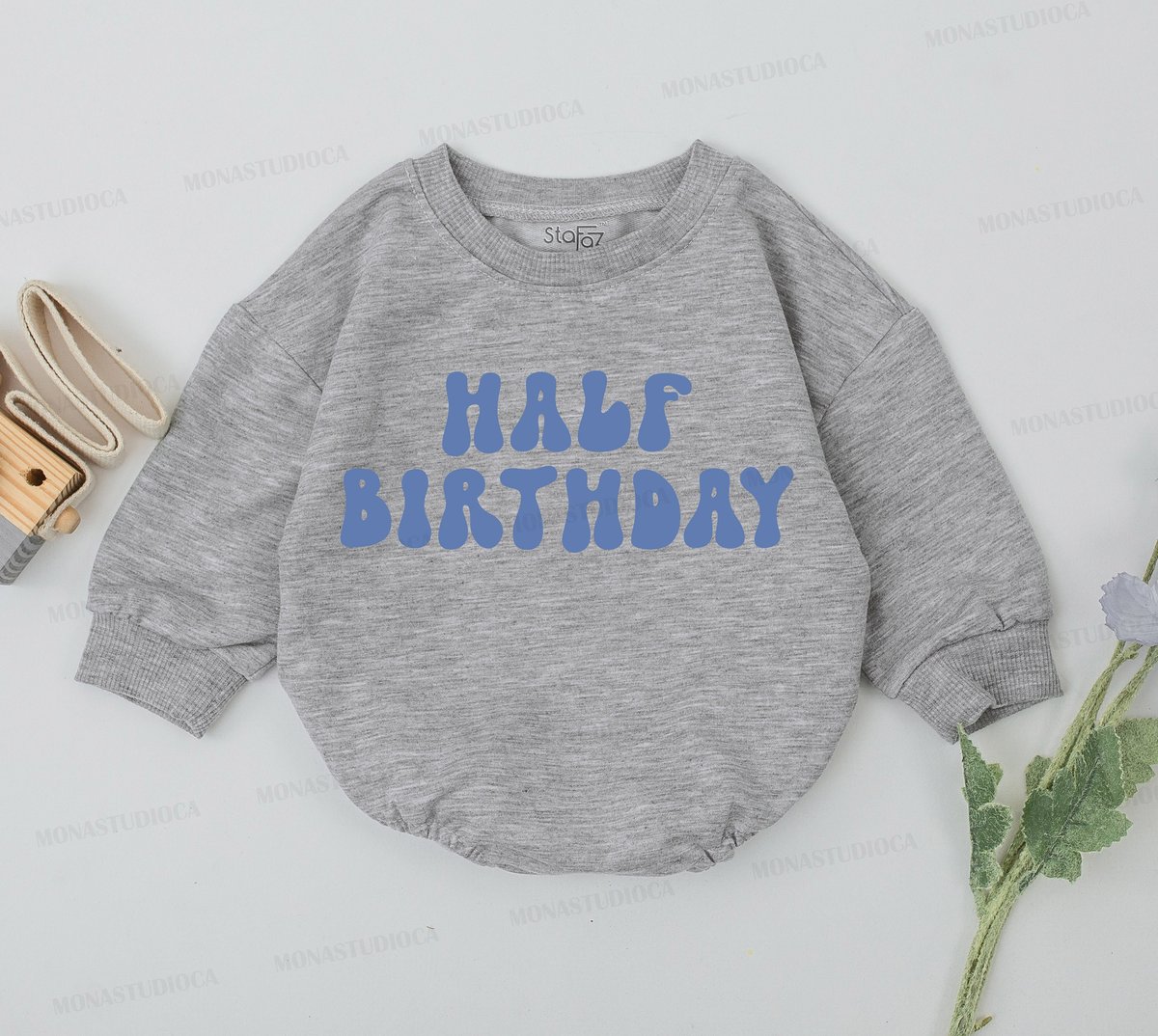 Half Birthday Boy Romper Half Way To One Baby Romper 6 Months Birthday Gift Natural Birthday Outfit