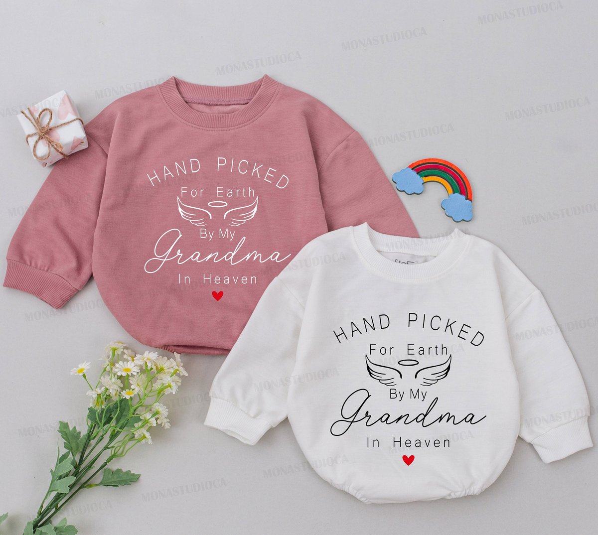 Hand Picked For Earth By My Grandma In Heaven Romper Natural Handpicked By My Grandma Baby Shirt Mem