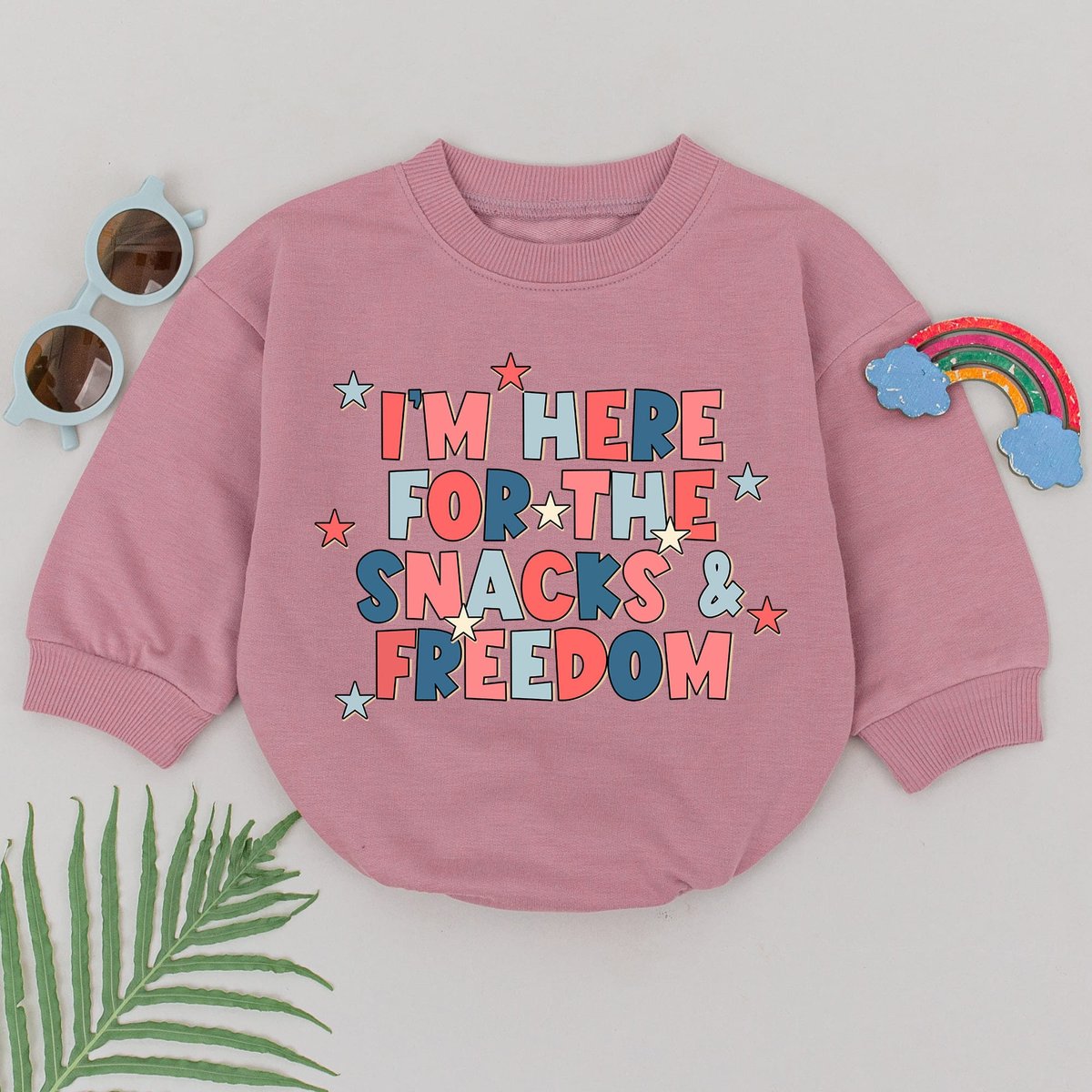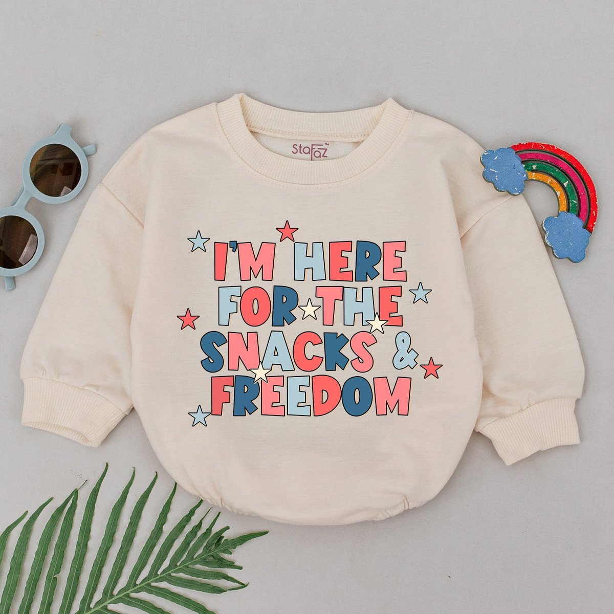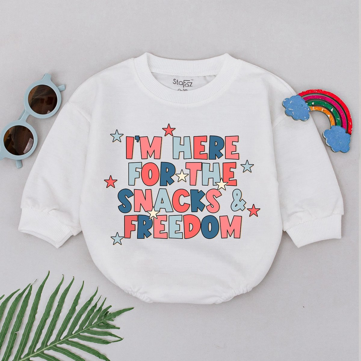 I’m Here for the Snacks and Freedom Romper 4th Of July Romper America Patriotic Bodysuit Independen