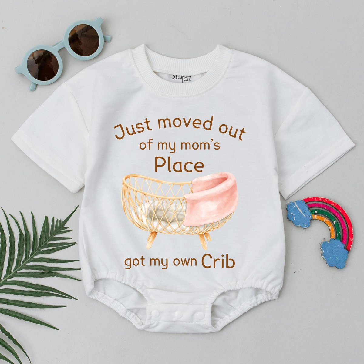 Just Moved Out of Moms Place Romper Funny Bodysuit Newborn Crib Outfit Baby Shower Gift Cute Infant
