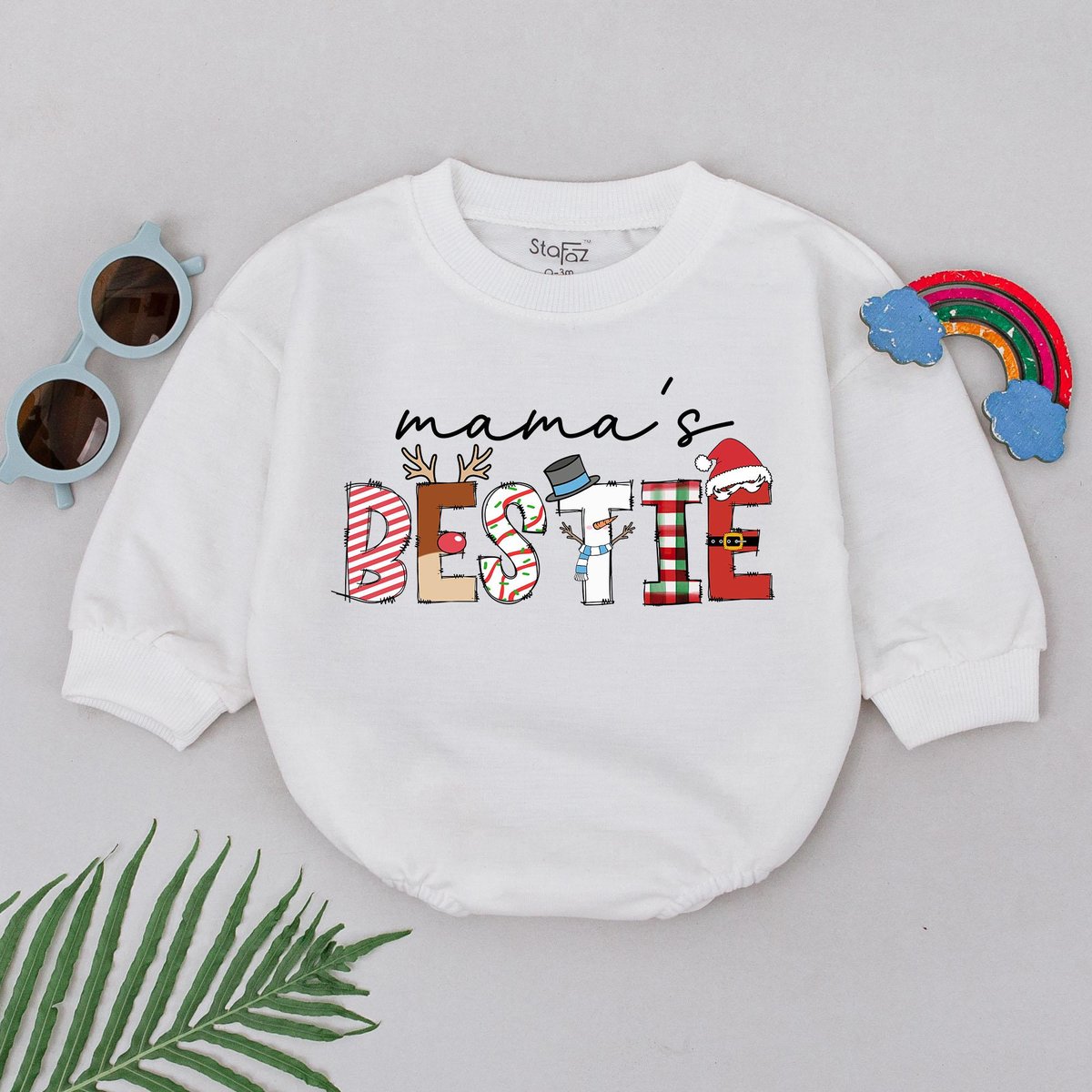 Mama’ Bestie Romper 1st Christmas Baby Romper Baby Shower Gift Christmas Outfits Newborn for Girls
