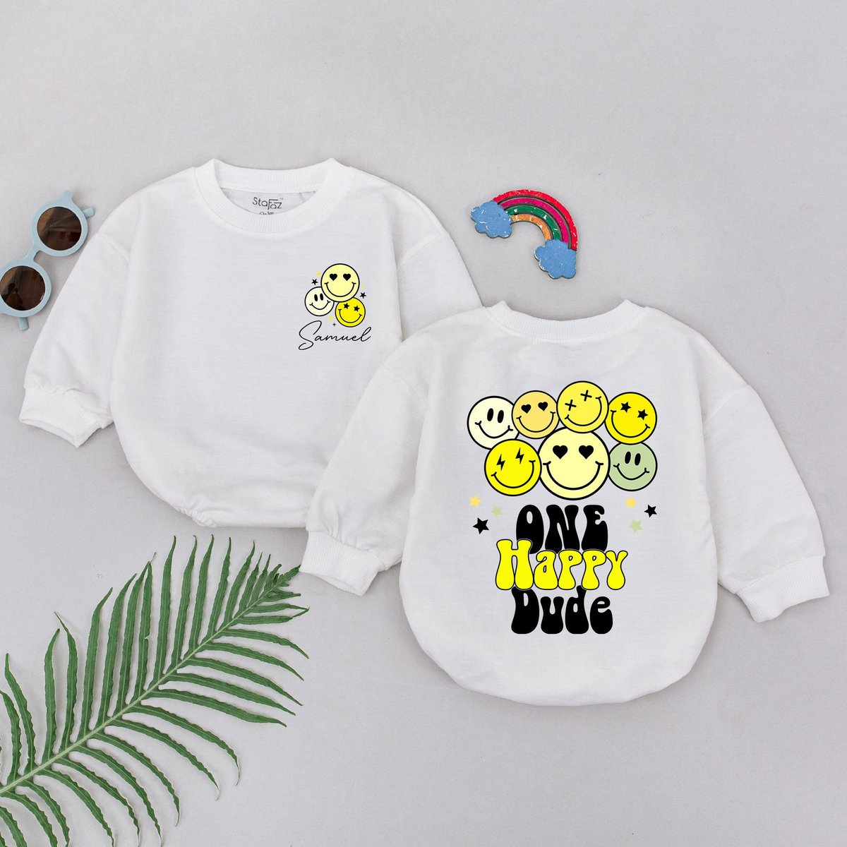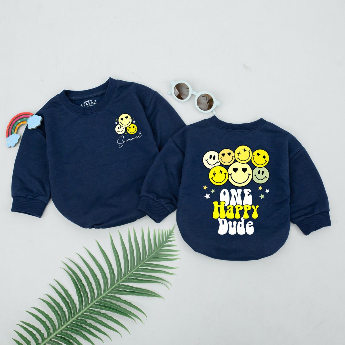 One Happy Dude Romper First Birthday Outfit Smiley Face Bodysuit Baby Boy Clothes 1st Birthday Boy O