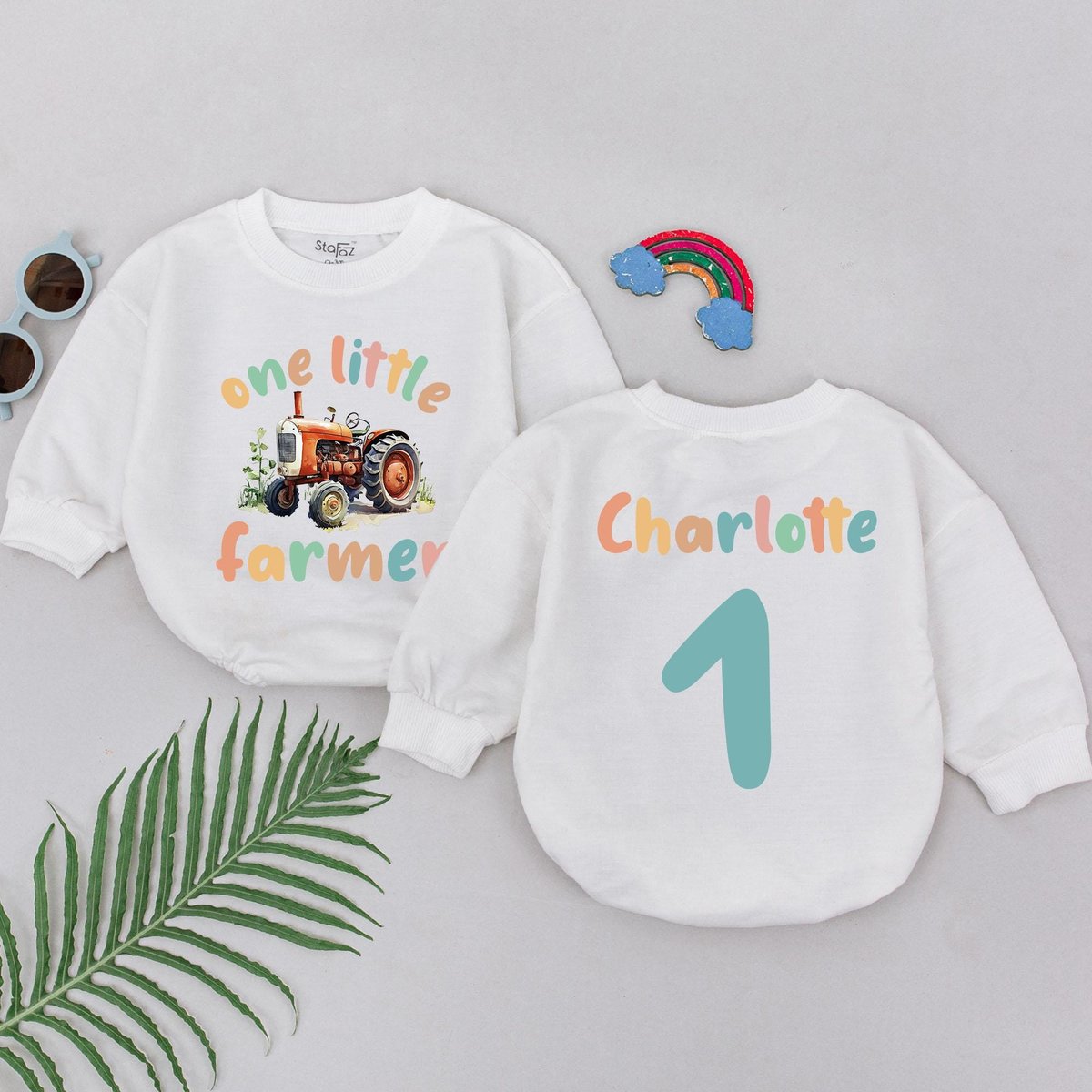 One Little Farmer Romper Farmer 1st Birthday Romper First Birthday Baby Outfit Farm 1st Birthday Bod