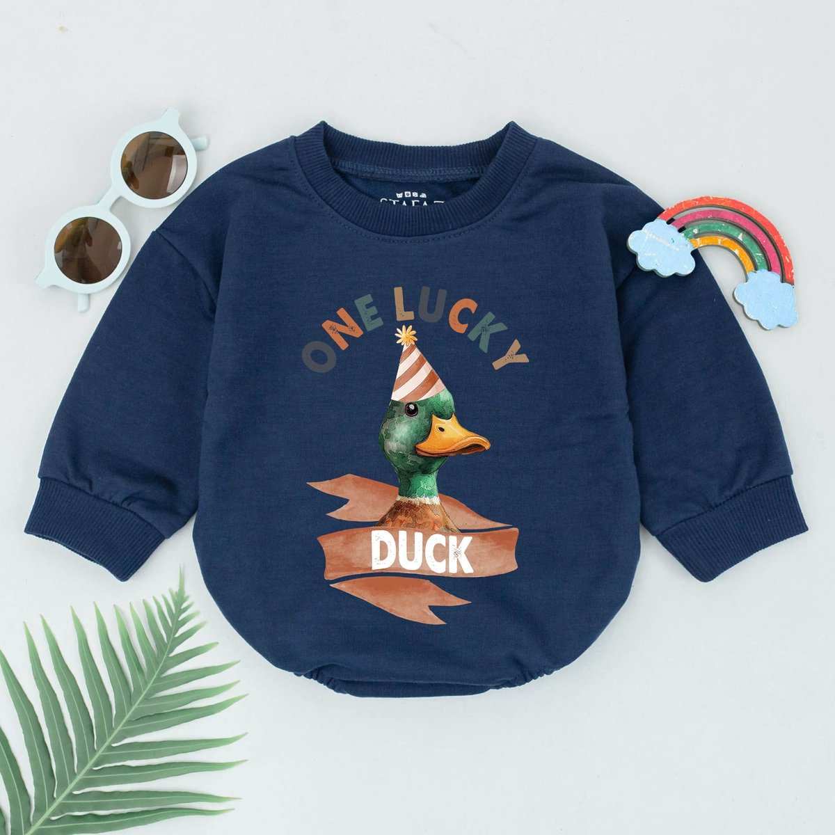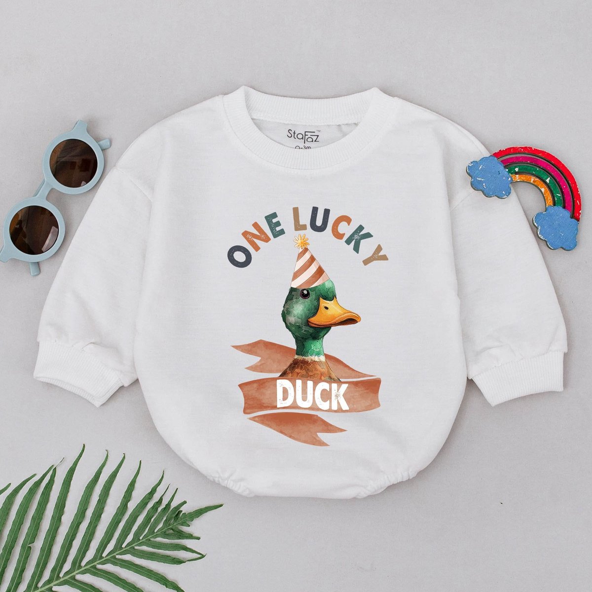 One Lucky Duck Romper Duck Birthday Romper First Birthday Baby Outfit 1st Birthday Bodysuit Jungle Z