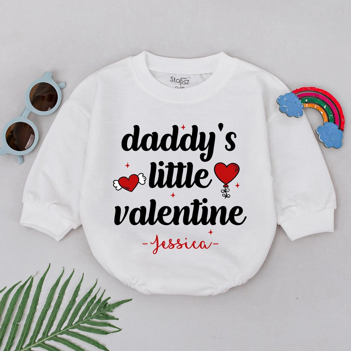 Personalization Daddy’s Little Valentine Romper 1st Valentines Day Bodysuit Valentines Day Baby Gir