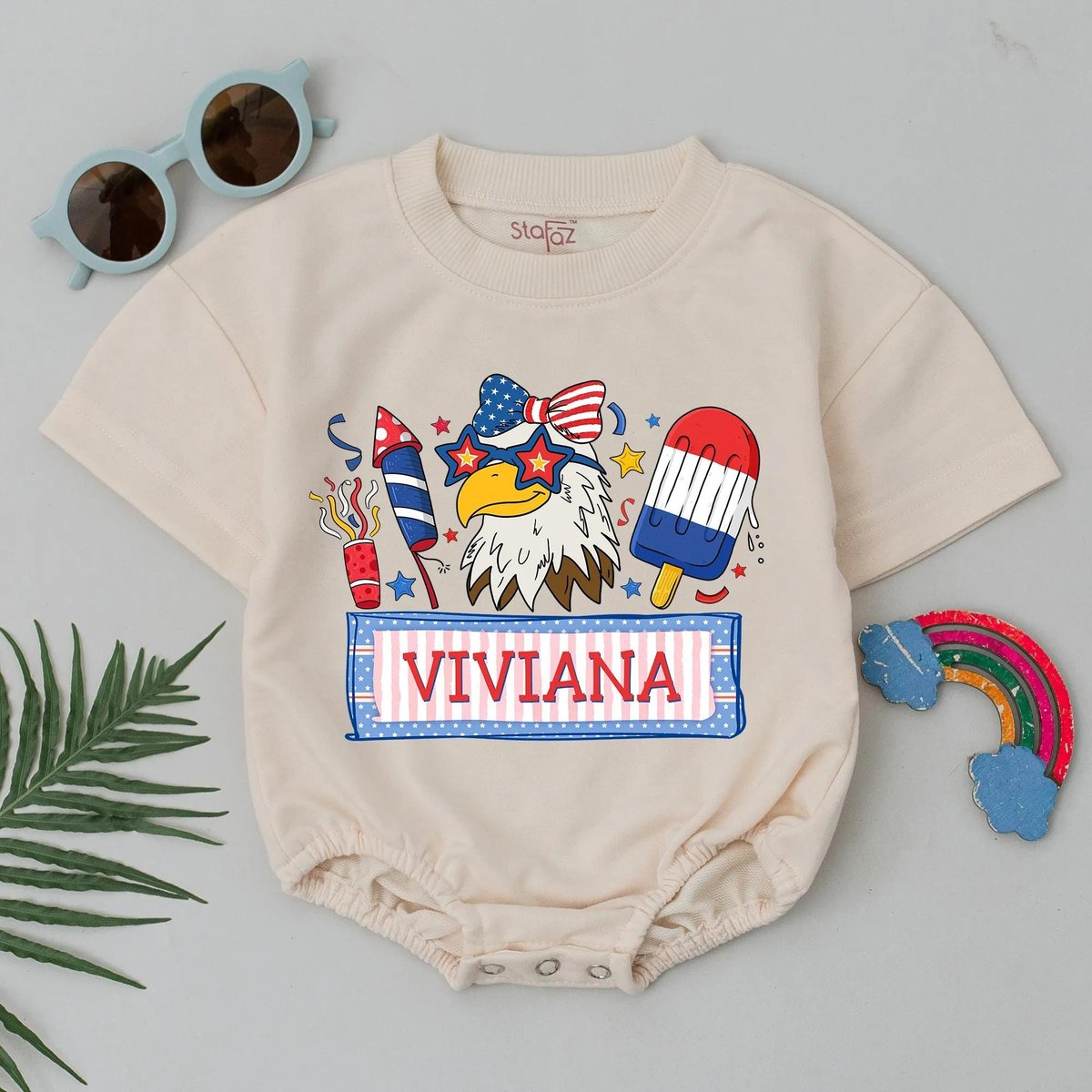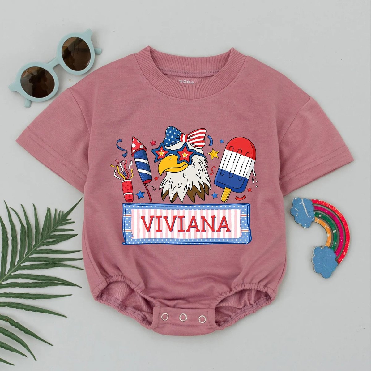 Personalized 4th Of July Baby Romper Custom Name Independence Day Gift for Girl American Fireworks a
