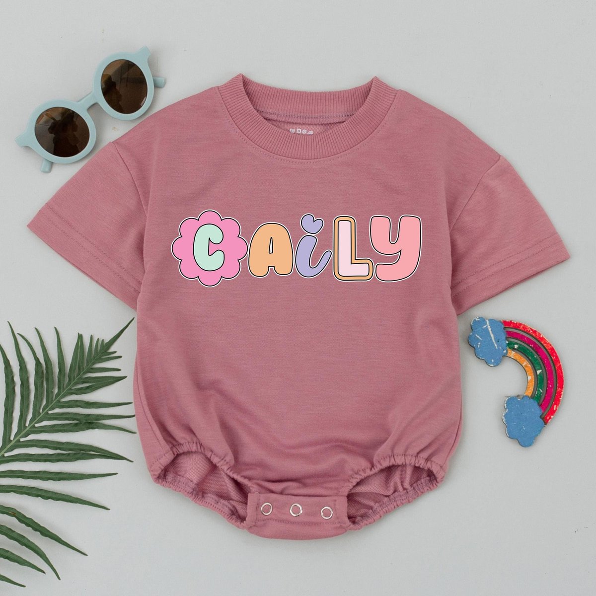 Personalized Baby Bubble Romper Custom Name Summer Baby Bodysuit Cute Floral Baby Outfit Birthday Ba
