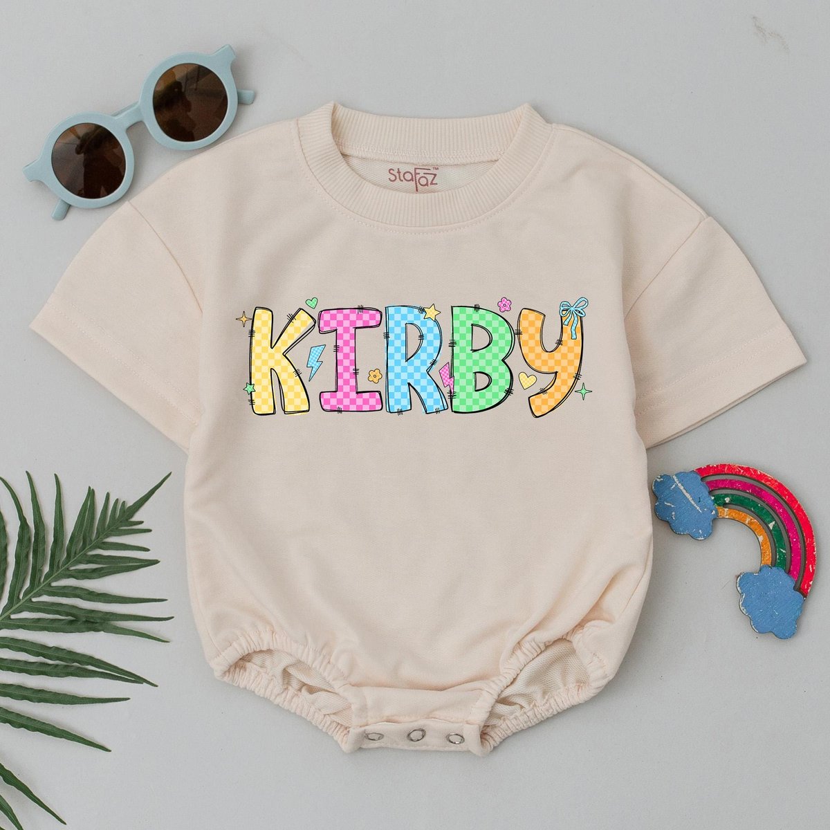 Personalized Checkered Name Baby Romper Colorful Baby Girl Bodysuit Cute Baby Outfit Custom Birthday