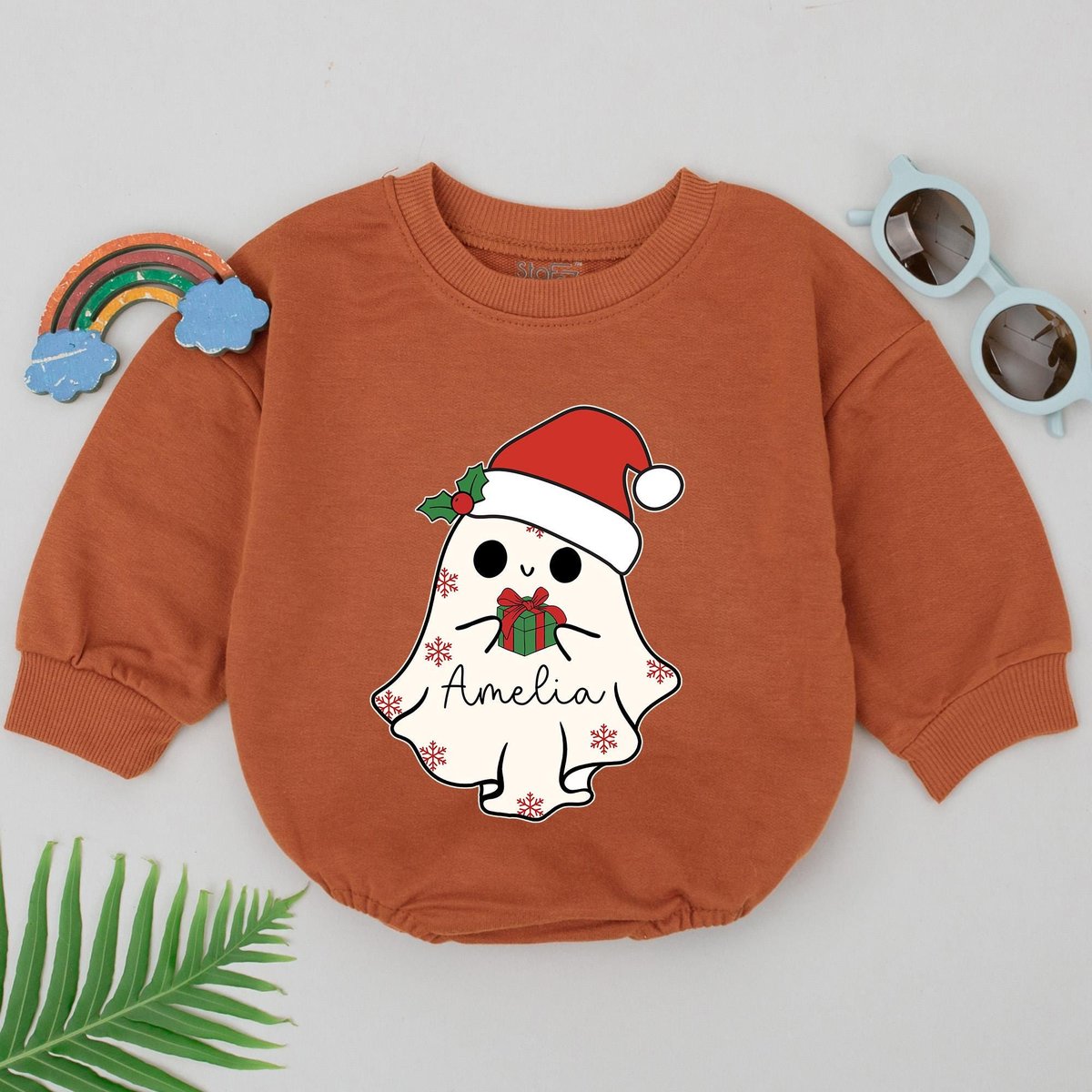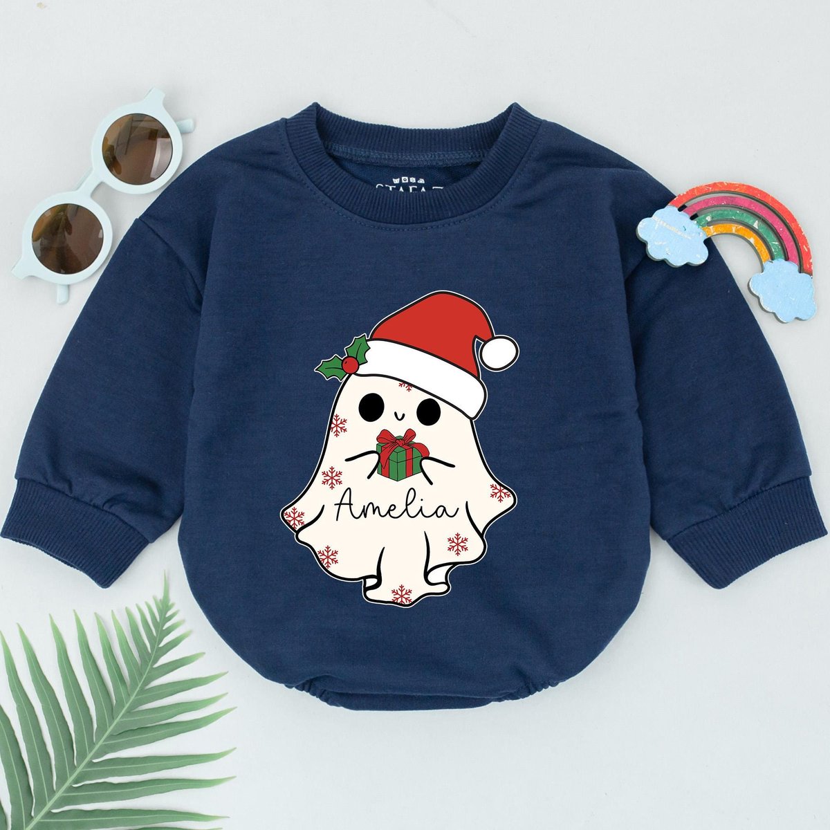 Personalized Christmas Ghost Romper 1st Christmas Romper Name Christmas Outfits New Baby Gift Baby S