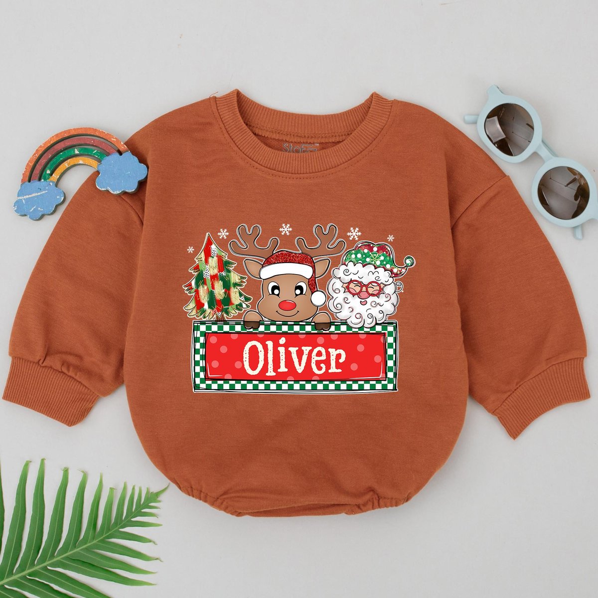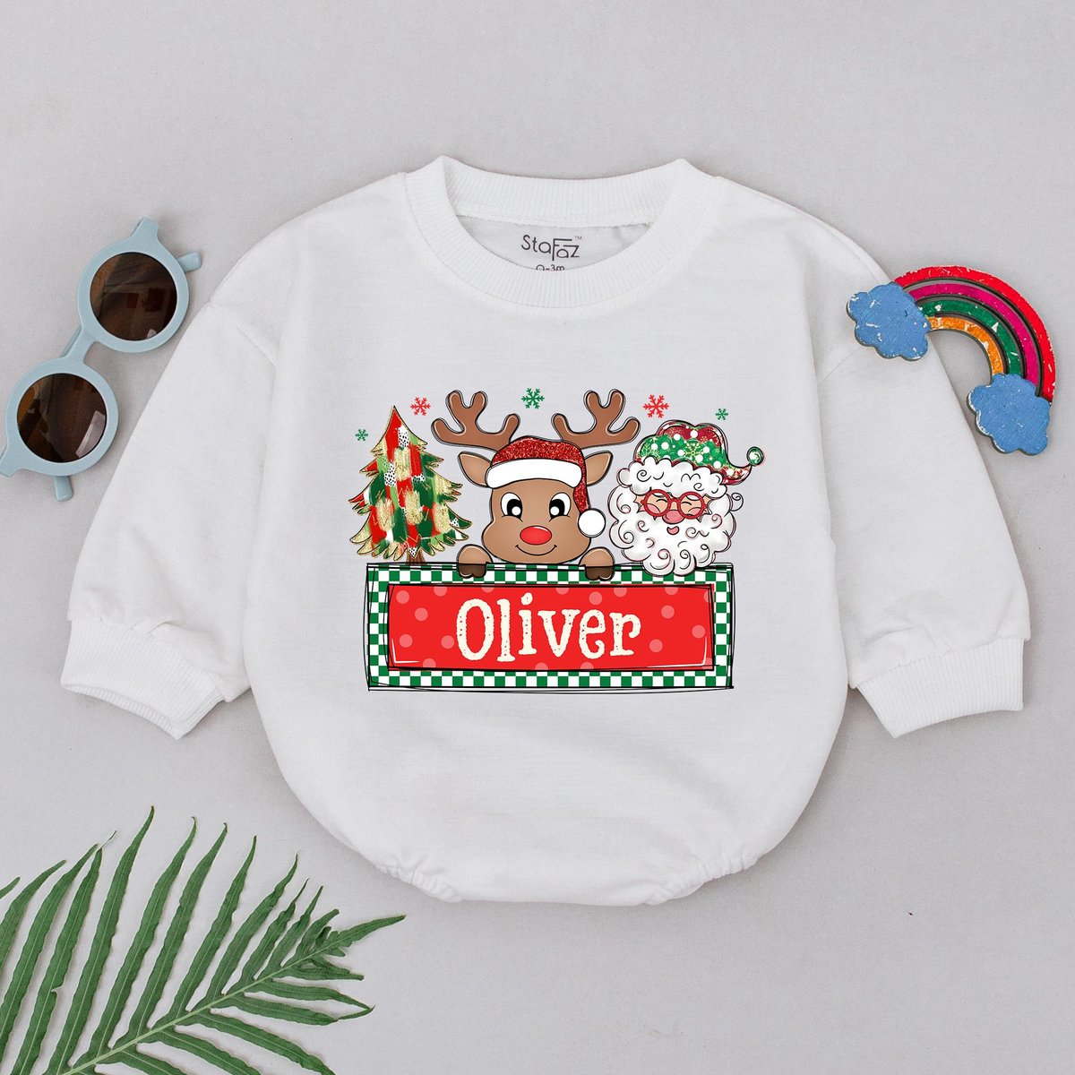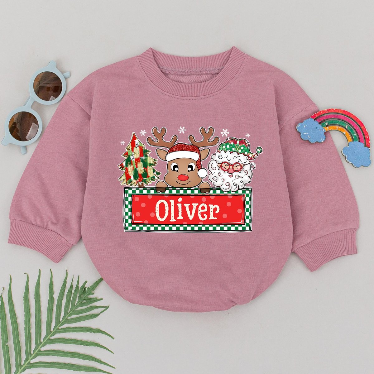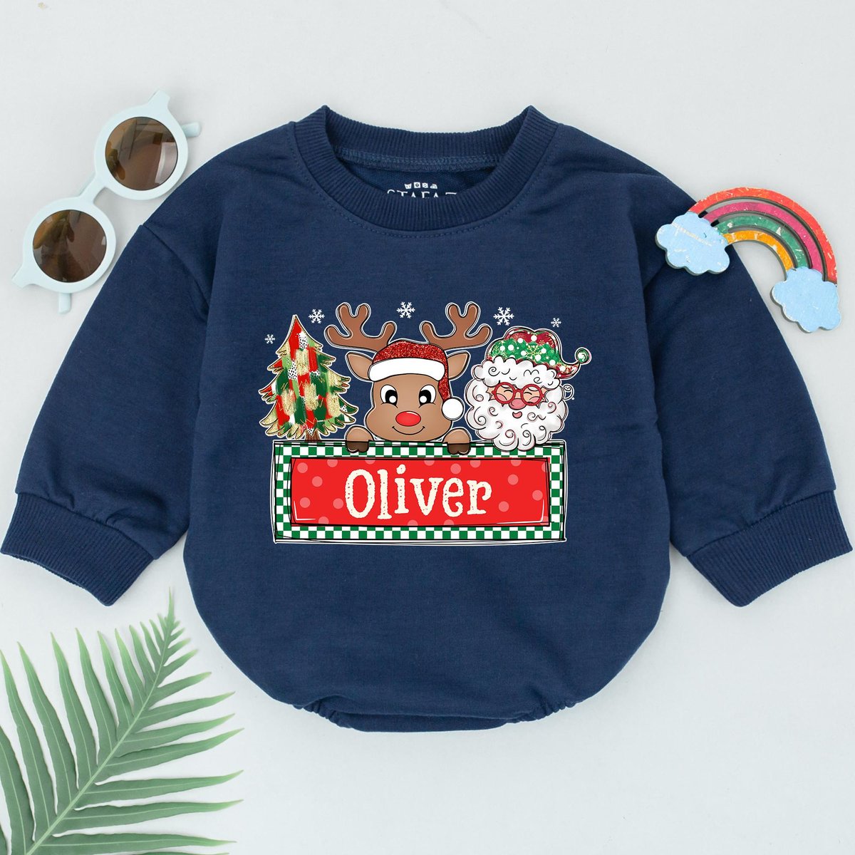 Personalized Christmas Reindeer Romper Custom Name 1st Christmas Bodysuit Winter Outfit For Boy Girl