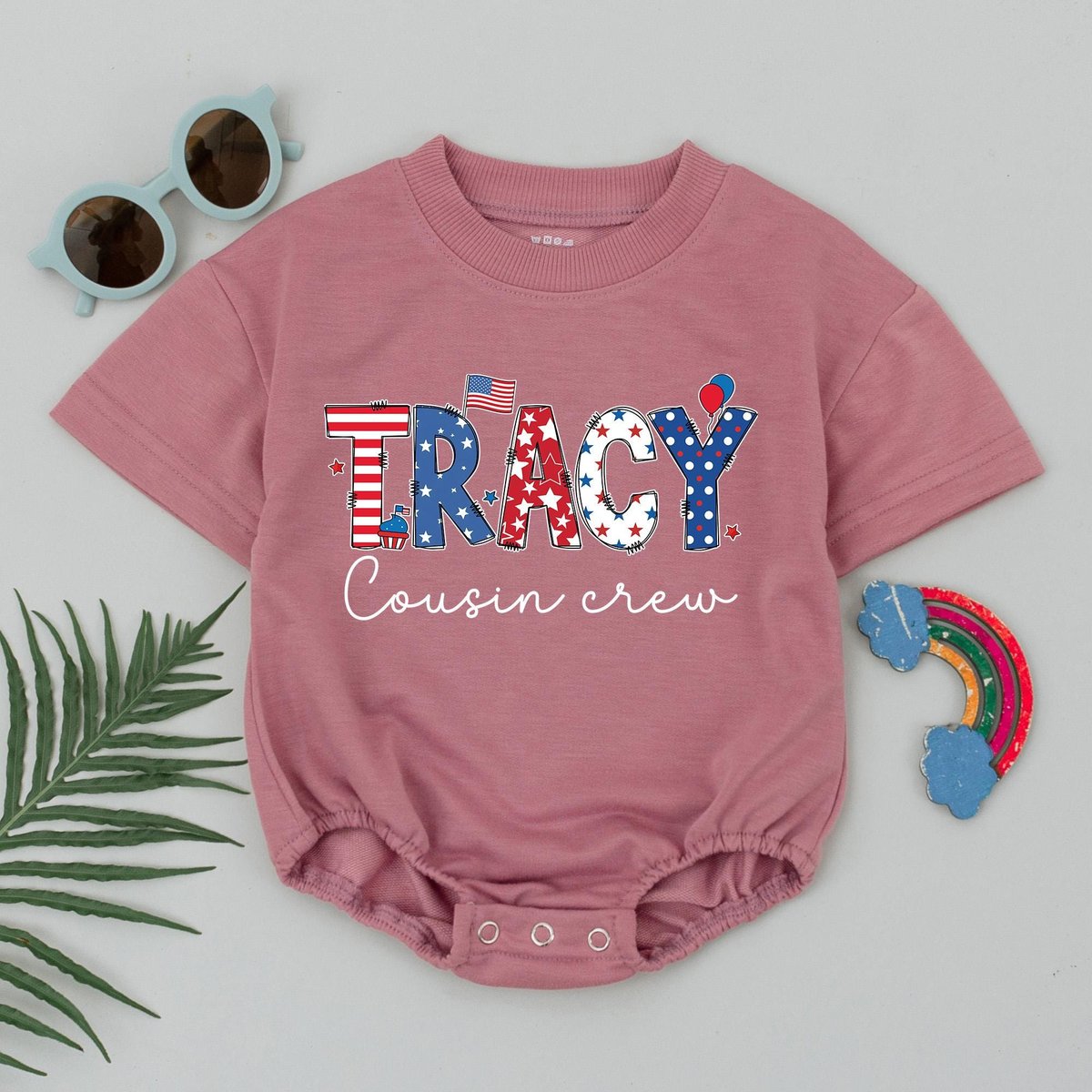 Personalized Cousin Crew Baby Romper Sibling Baby Outfit 4th of July Custom Name Bodysuit USA Patrio