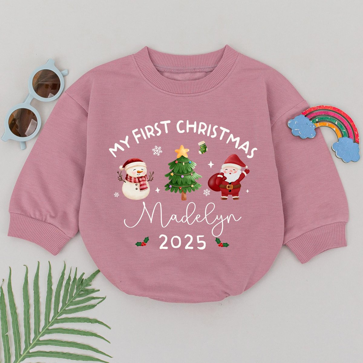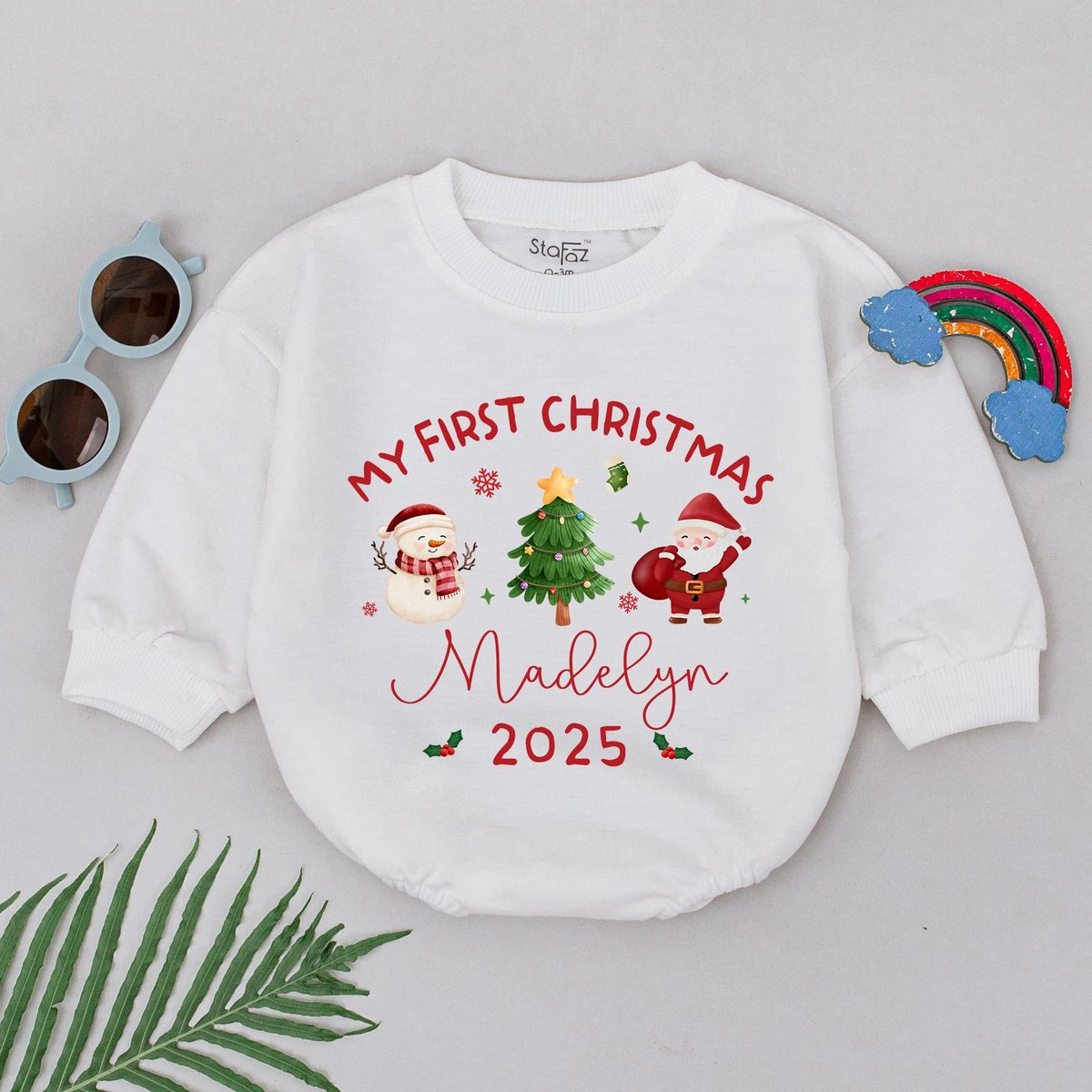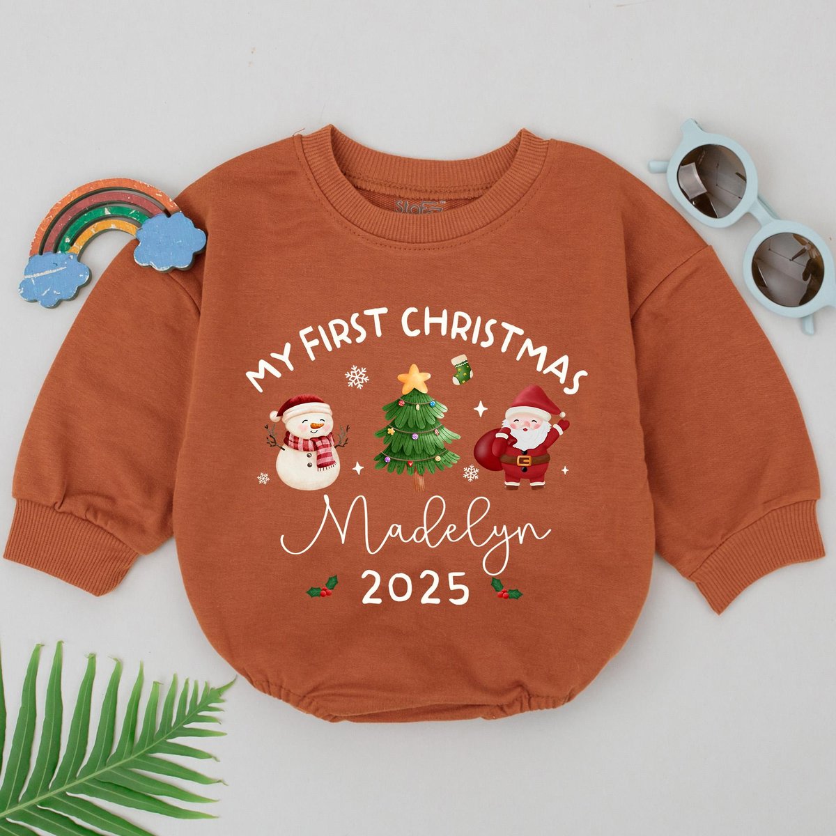 Personalized First Christmas Romper Custom Name 1st Christmas Bodysuit Winter Baby Outfit Xmas Baby
