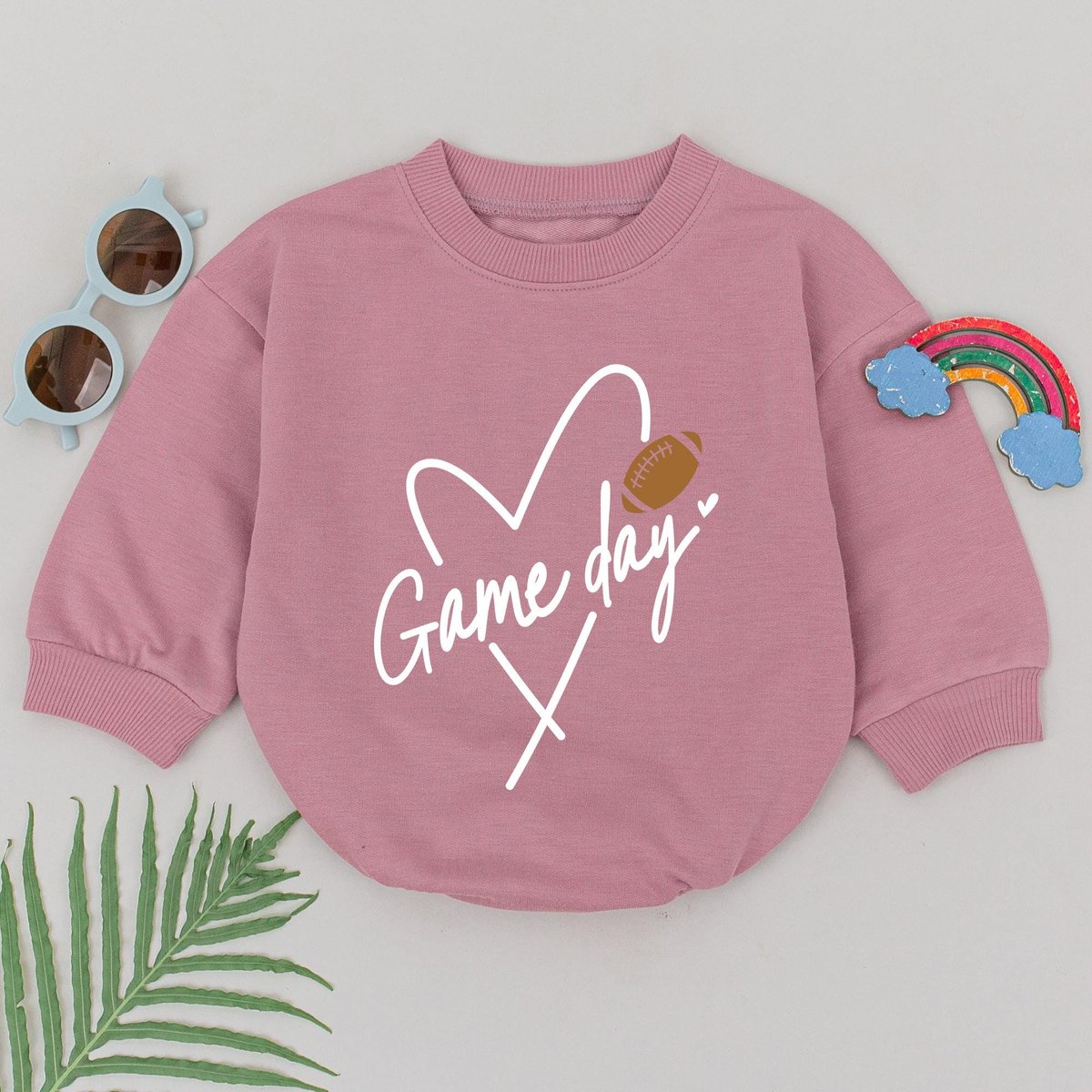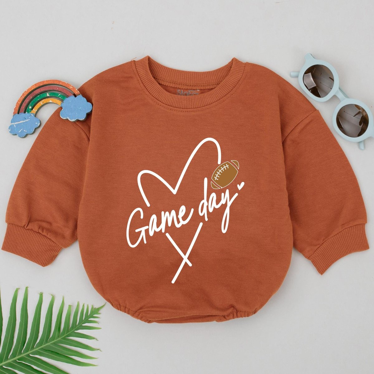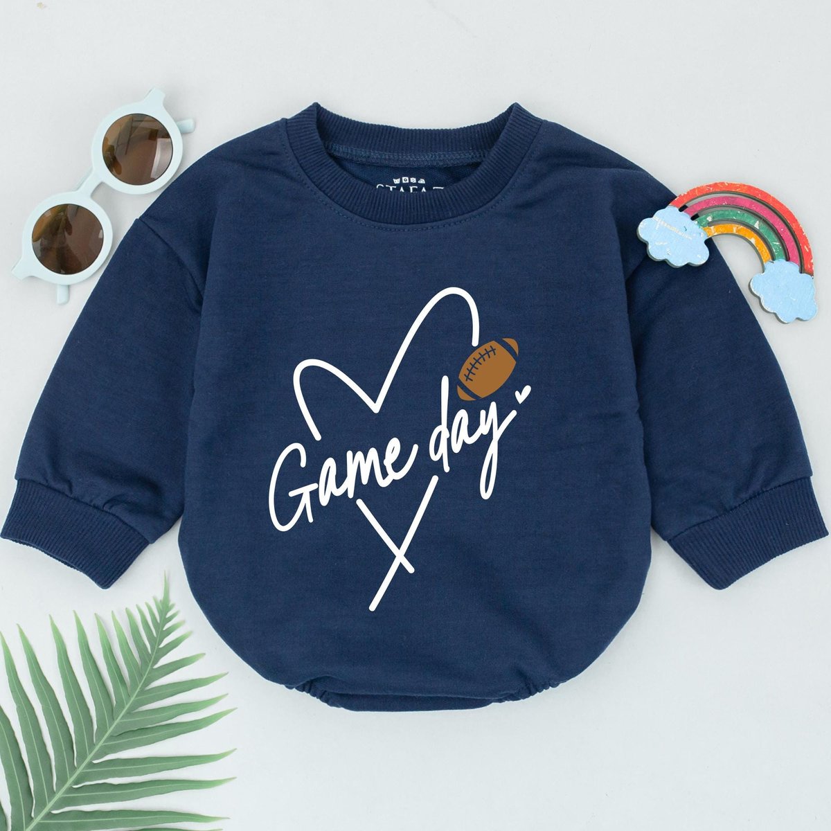 Personalized Game Day Football Romper Retro Football Outfit Gameday Season Natural Bubble Baby Rompe