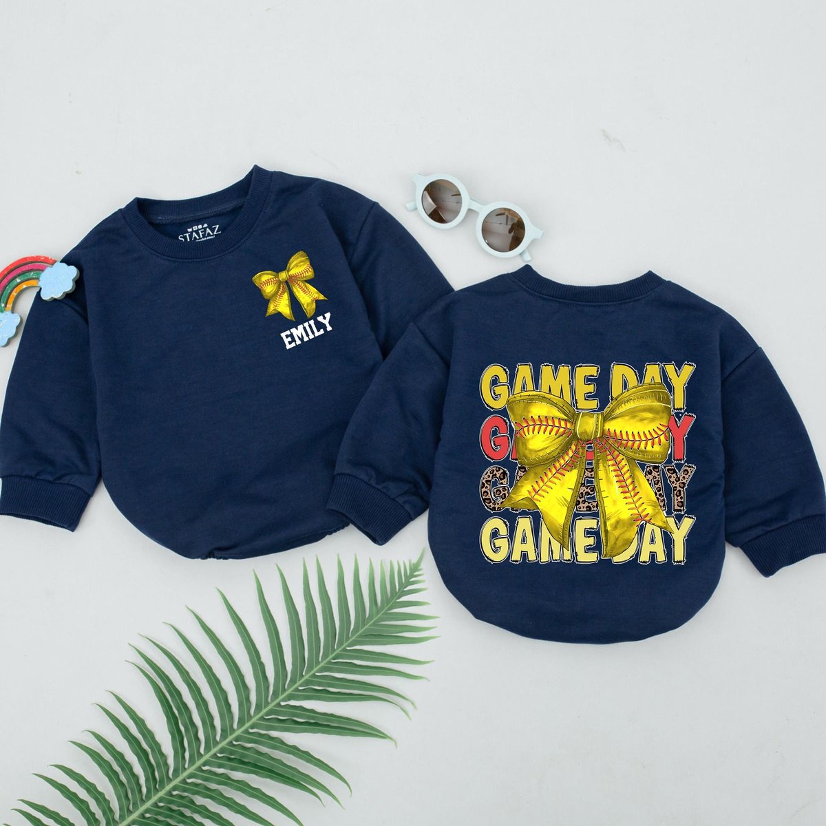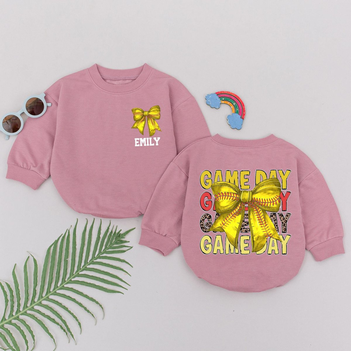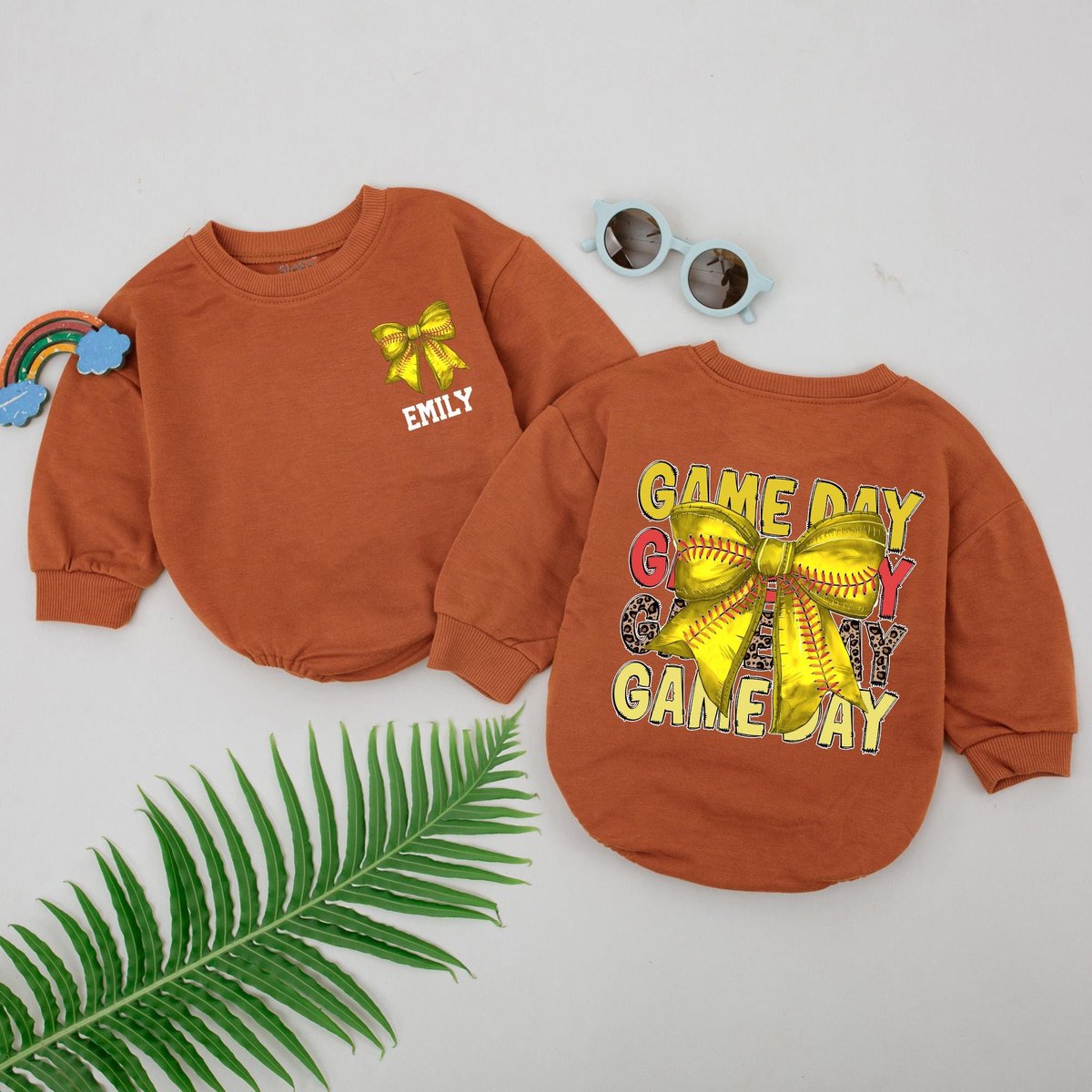 Personalized Game Day Softball Romper Gameday Season Gifts Retro Softball Bow Outfit Natural Bubble