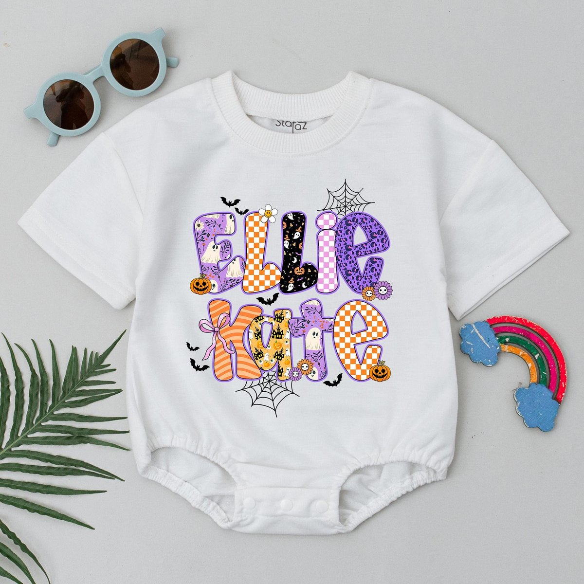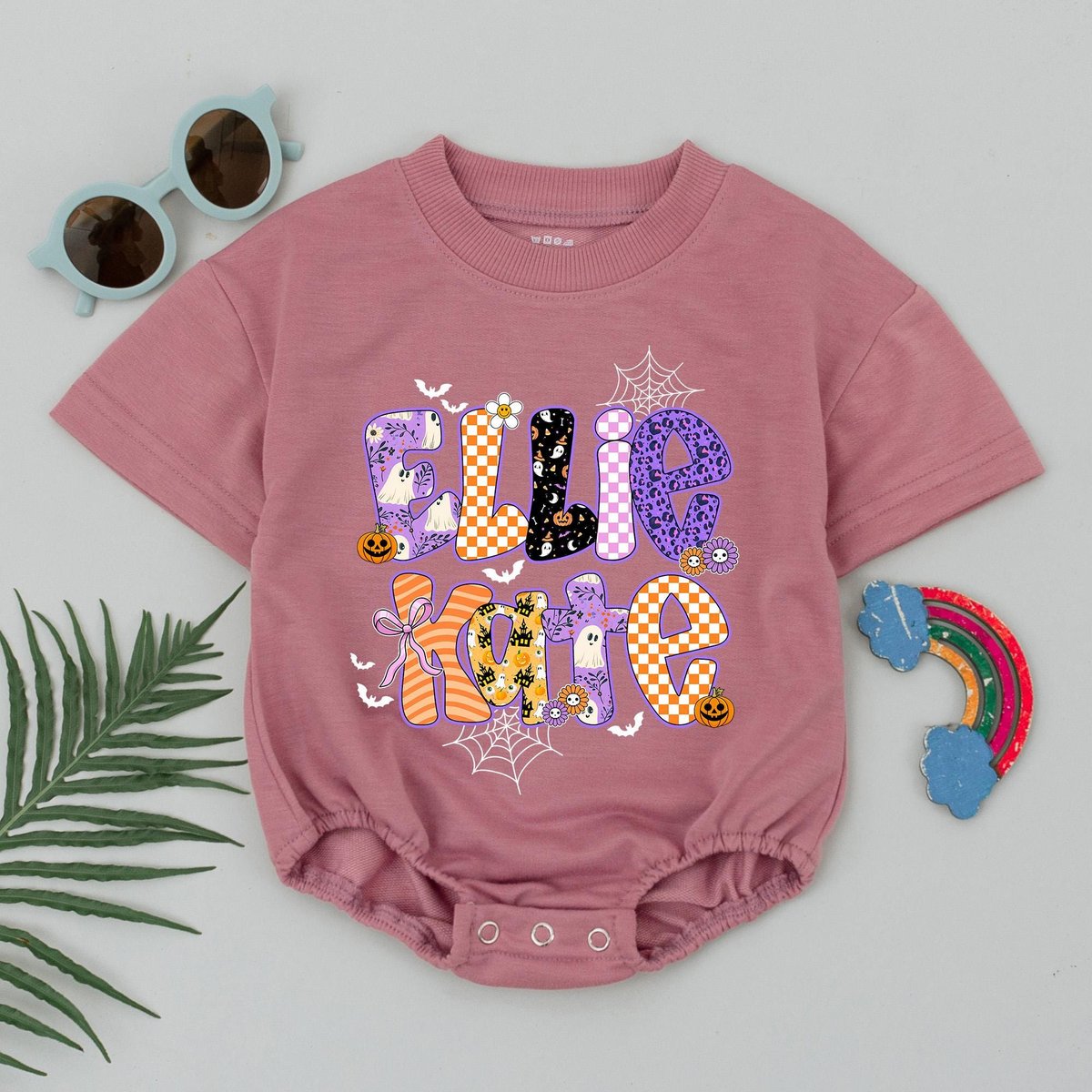 Personalized Halloween Baby Bubble Romper Custom Name Spooky Halloween Bodysuit Birthday Halloween O