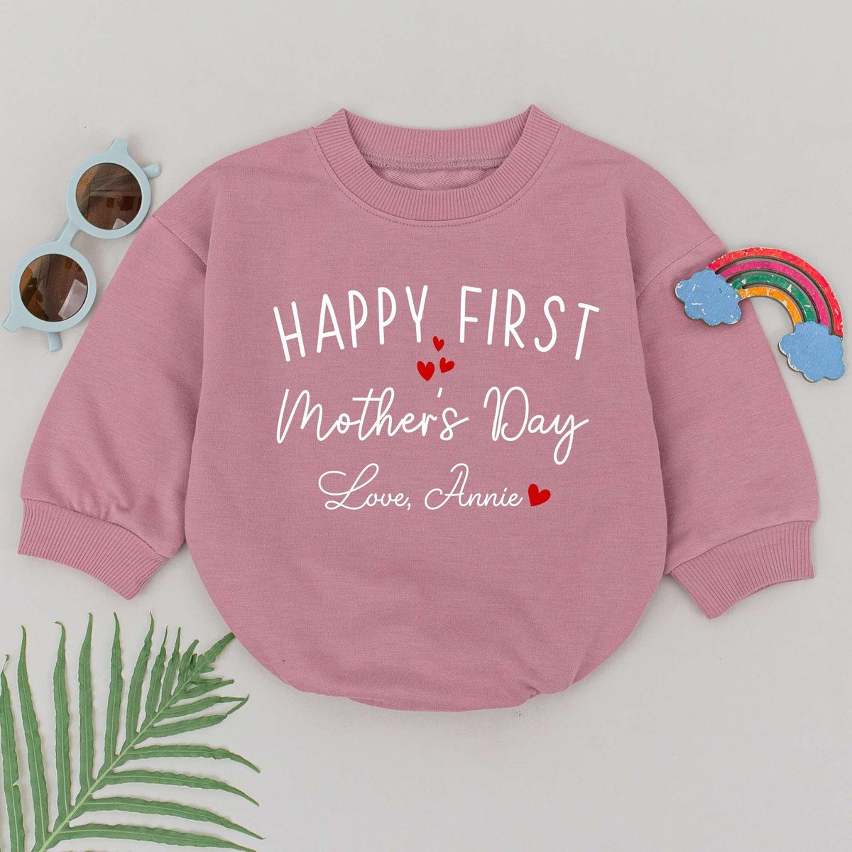 Personalized Happy First Mother’s Day Romper Mom Baby Outfits Mother’s Day Gift For Daughter Baby