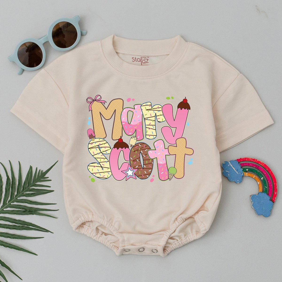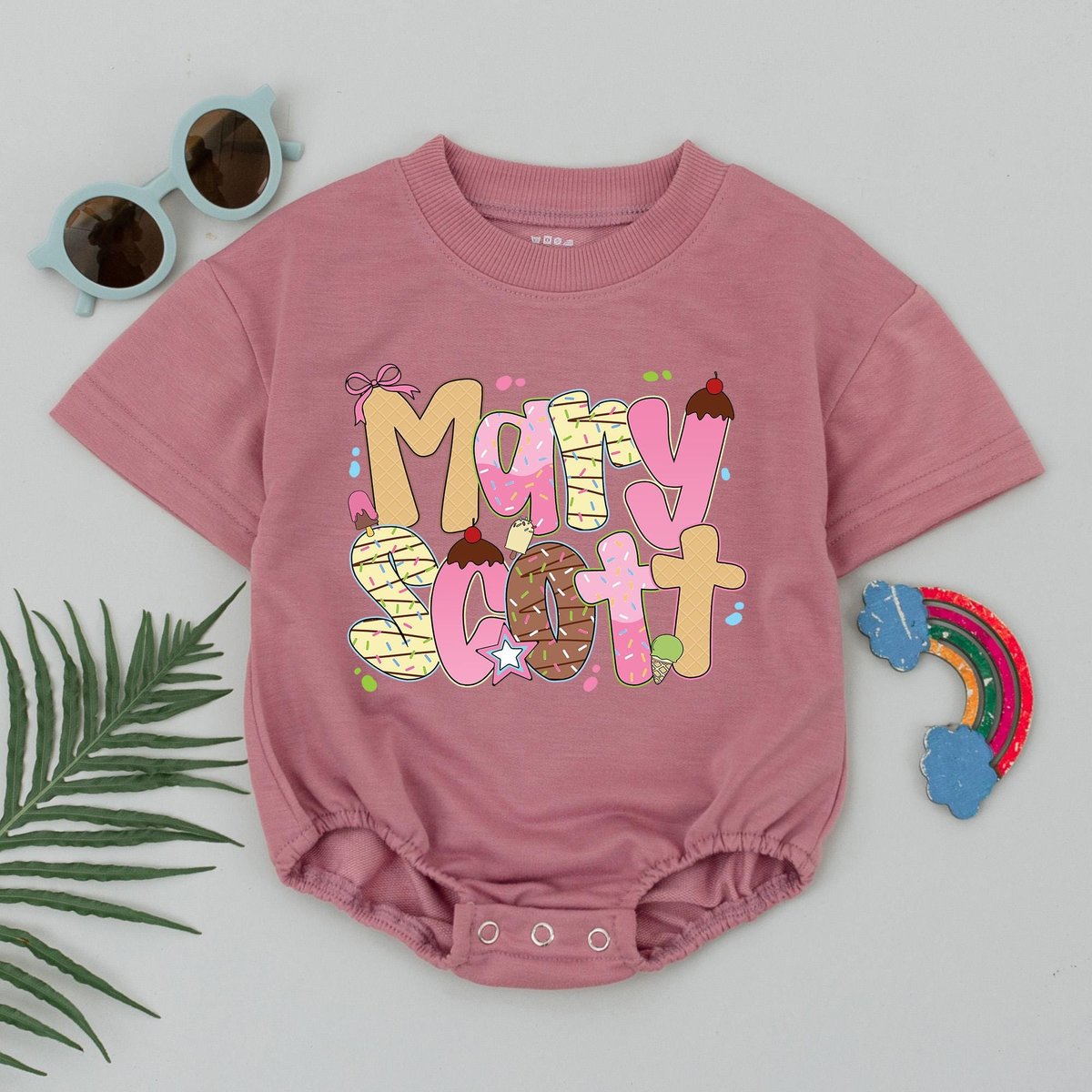 Personalized Ice Cream Summer Baby Bubble Romper Custom Name Bodysuit Birthday Girl Clothes Newborn
