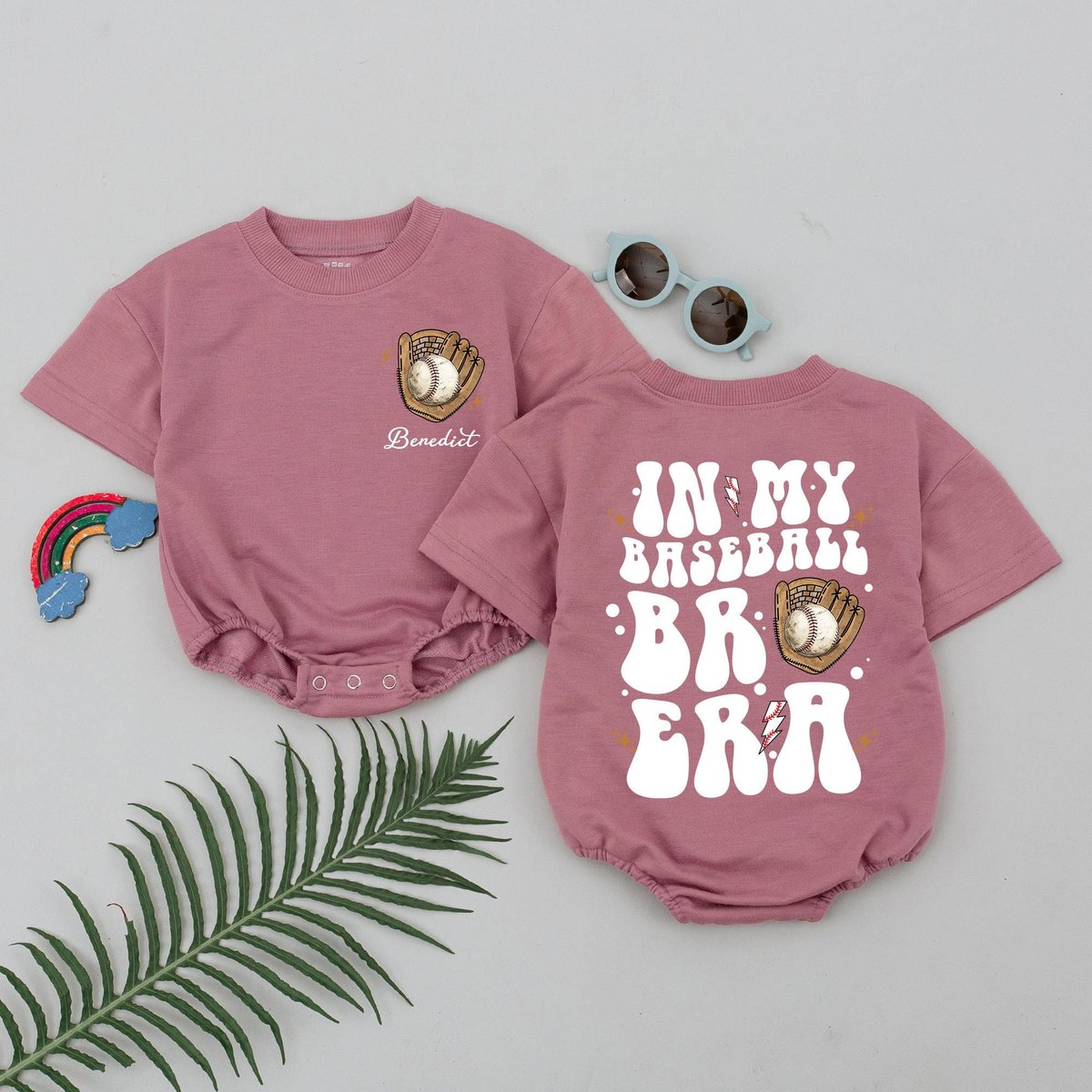 Personalized In My Baseball Bro Era Short Sleeve Romper Retro Baseball Outfits Gameday Season Bubble