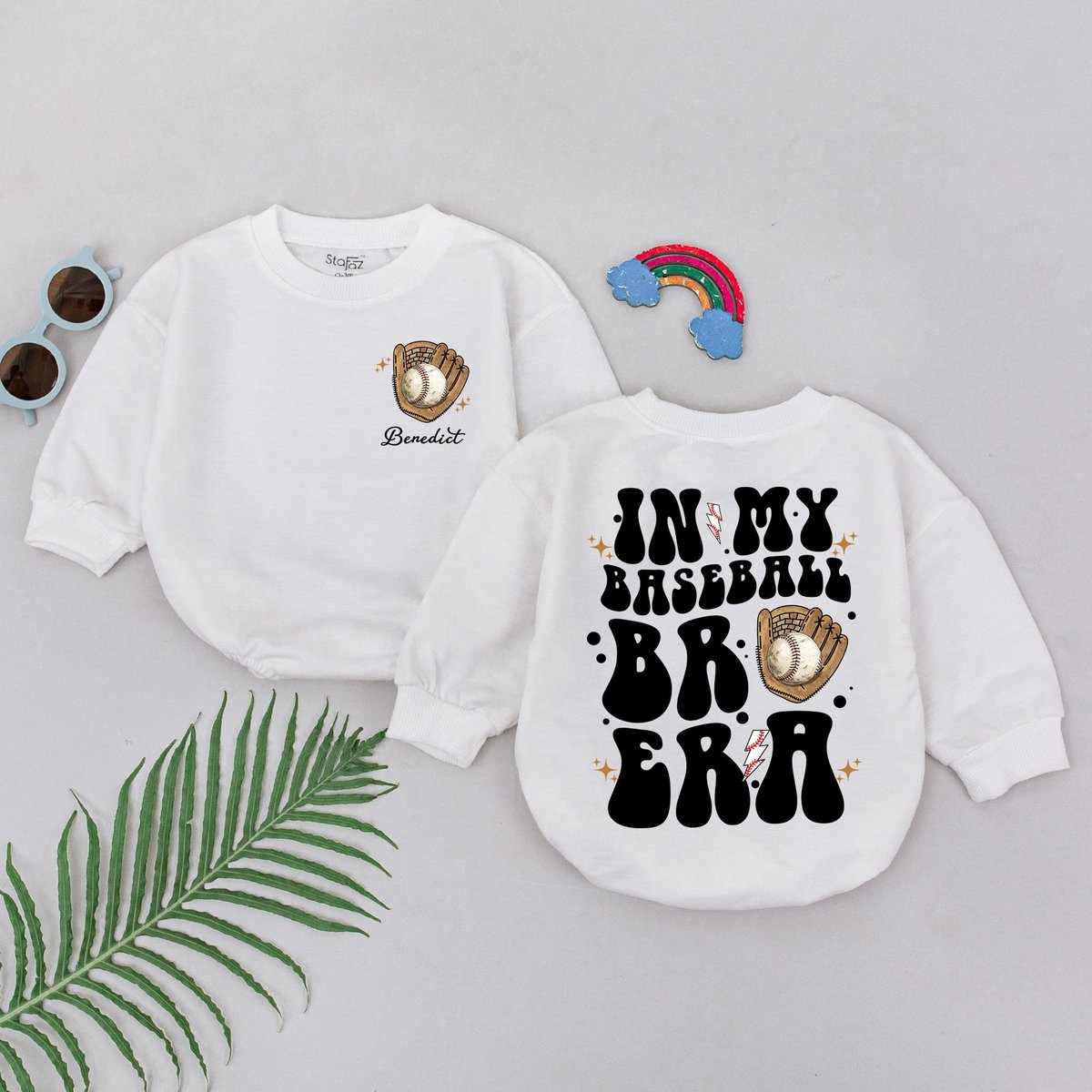 Personalized In My Baseball Bro Era Romper Boys Baseball Baseball Game Day Outfit Natural Bubble Bod