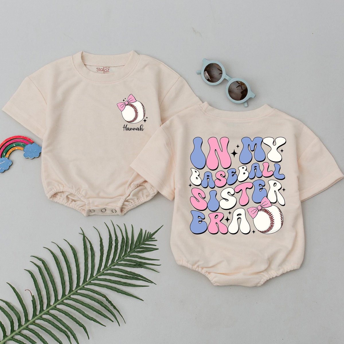 Personalized In My Baseball Sister Era Short Sleeve Bubble T-Shirt Romper Retro Baseball Outfits Gam
