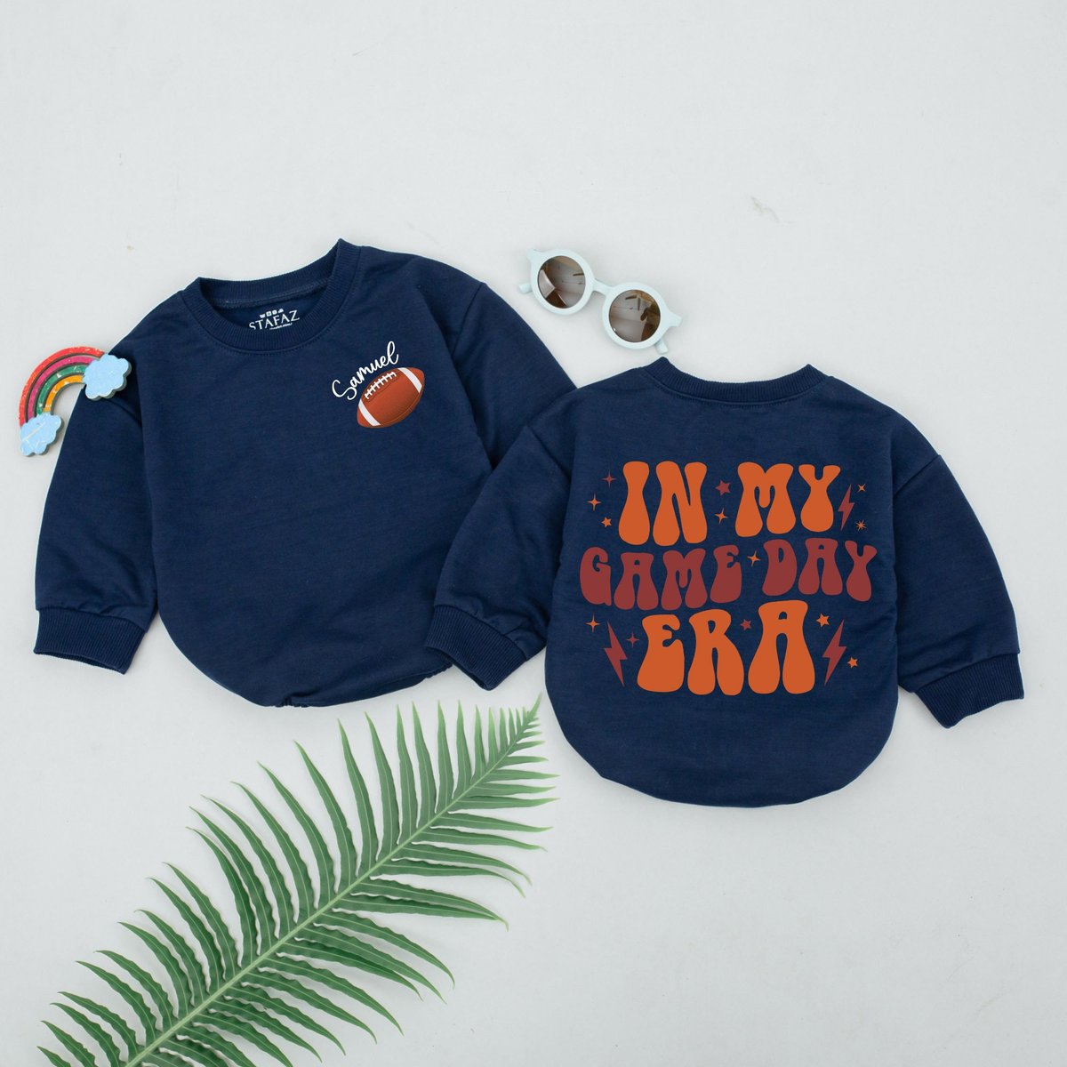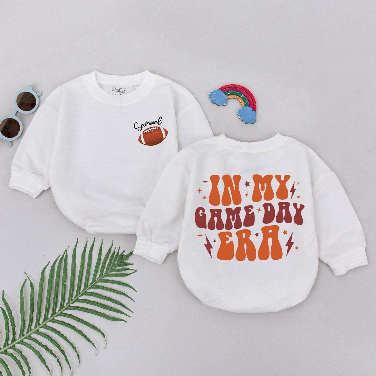 Personalized In My Game Day Era Romper Retro Football Baby Outfit Gameday Season Natural Bubble Baby