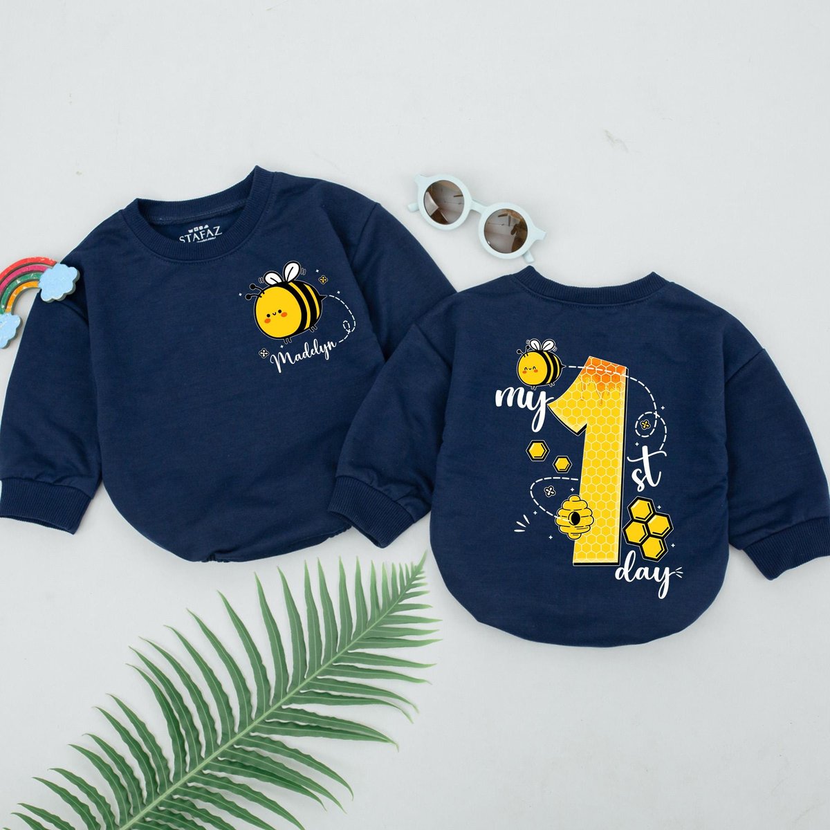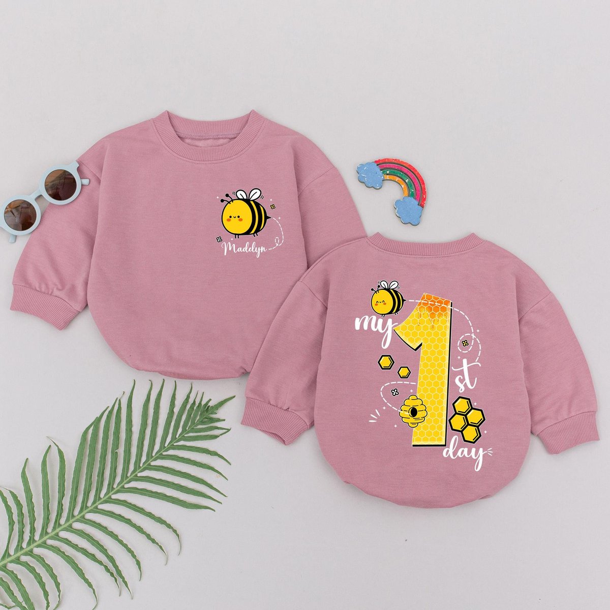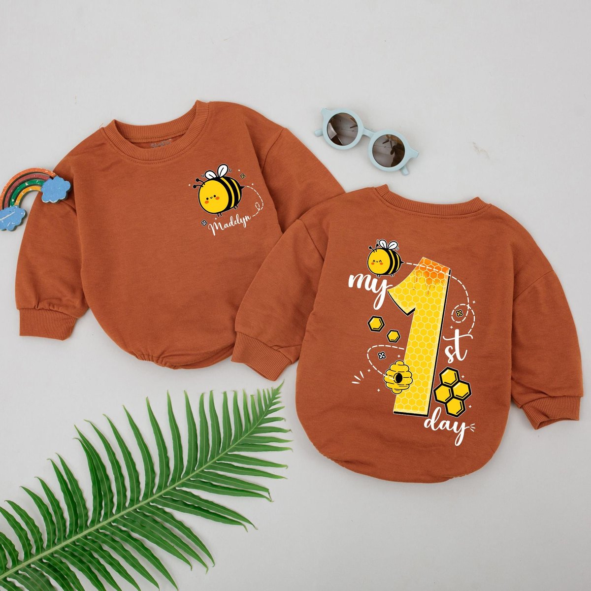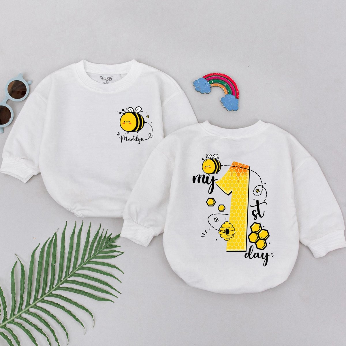 Personalized My 1st Bee Day Romper Bee First Birthday Bodysuit Bumblebee Birthday Theme Party First