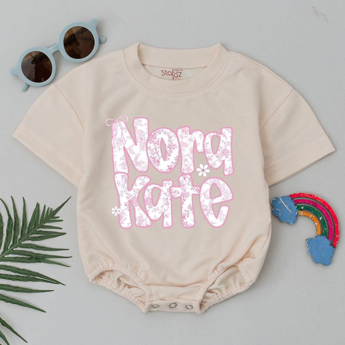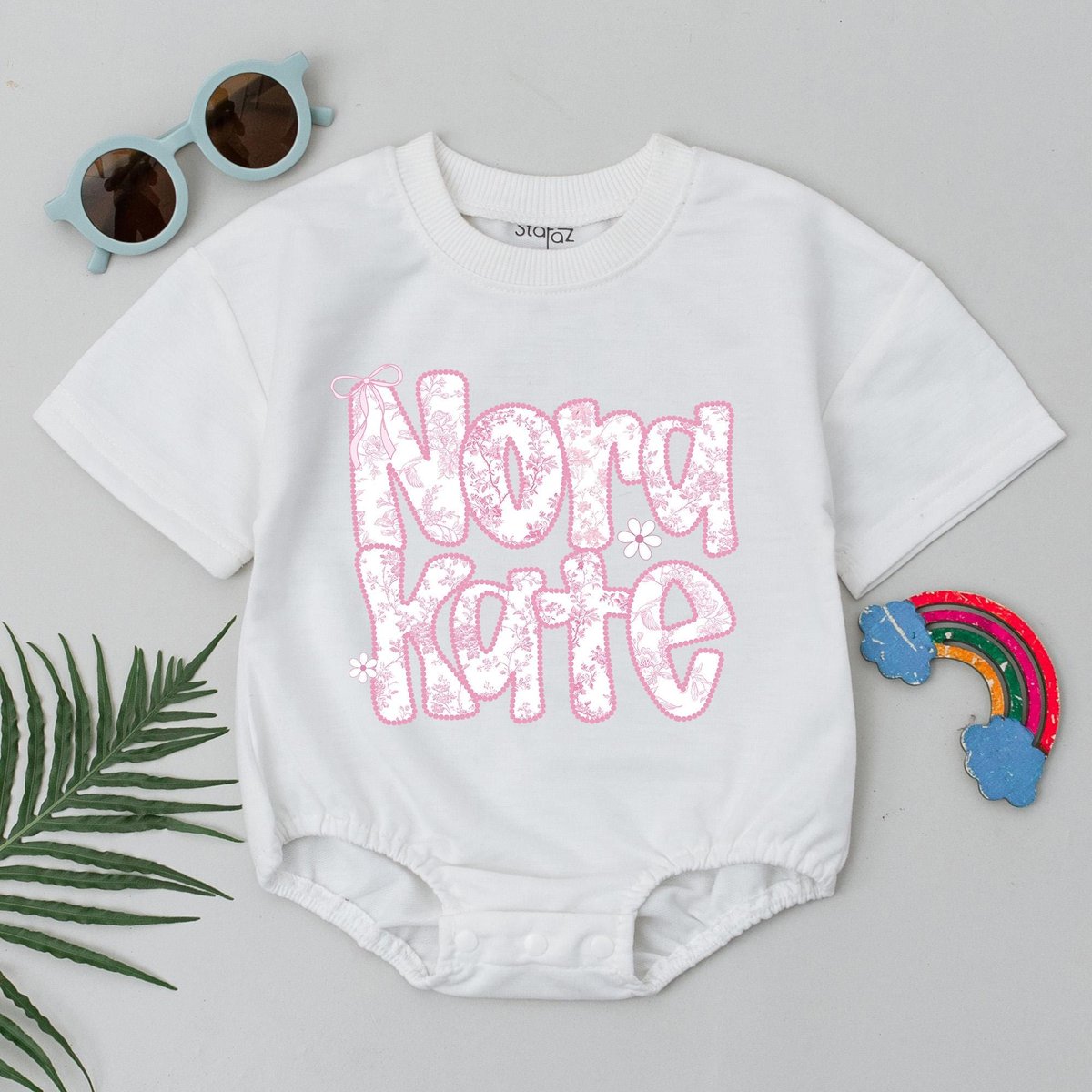 Personalized Name Baby Bubble Romper Pink Chinoiserie Floral Bodysuit Cute Baby Girl Outfit Custom B