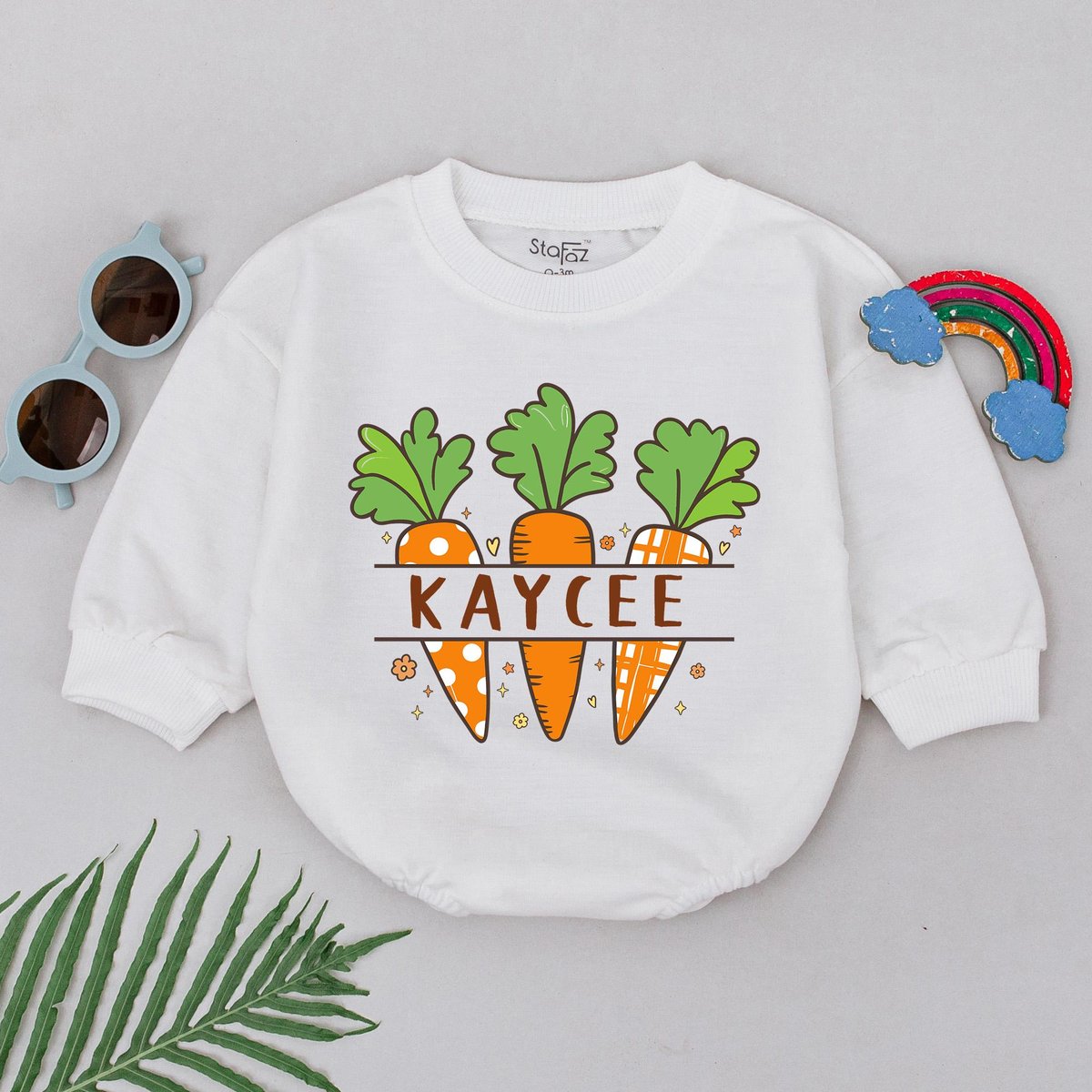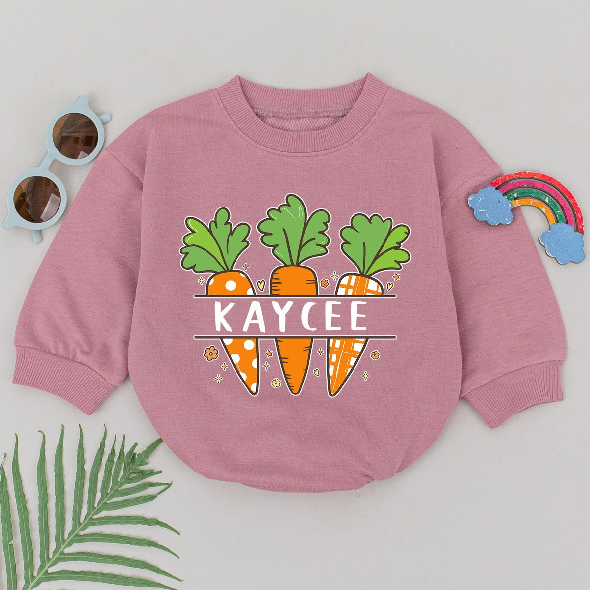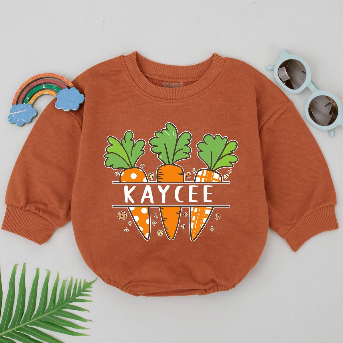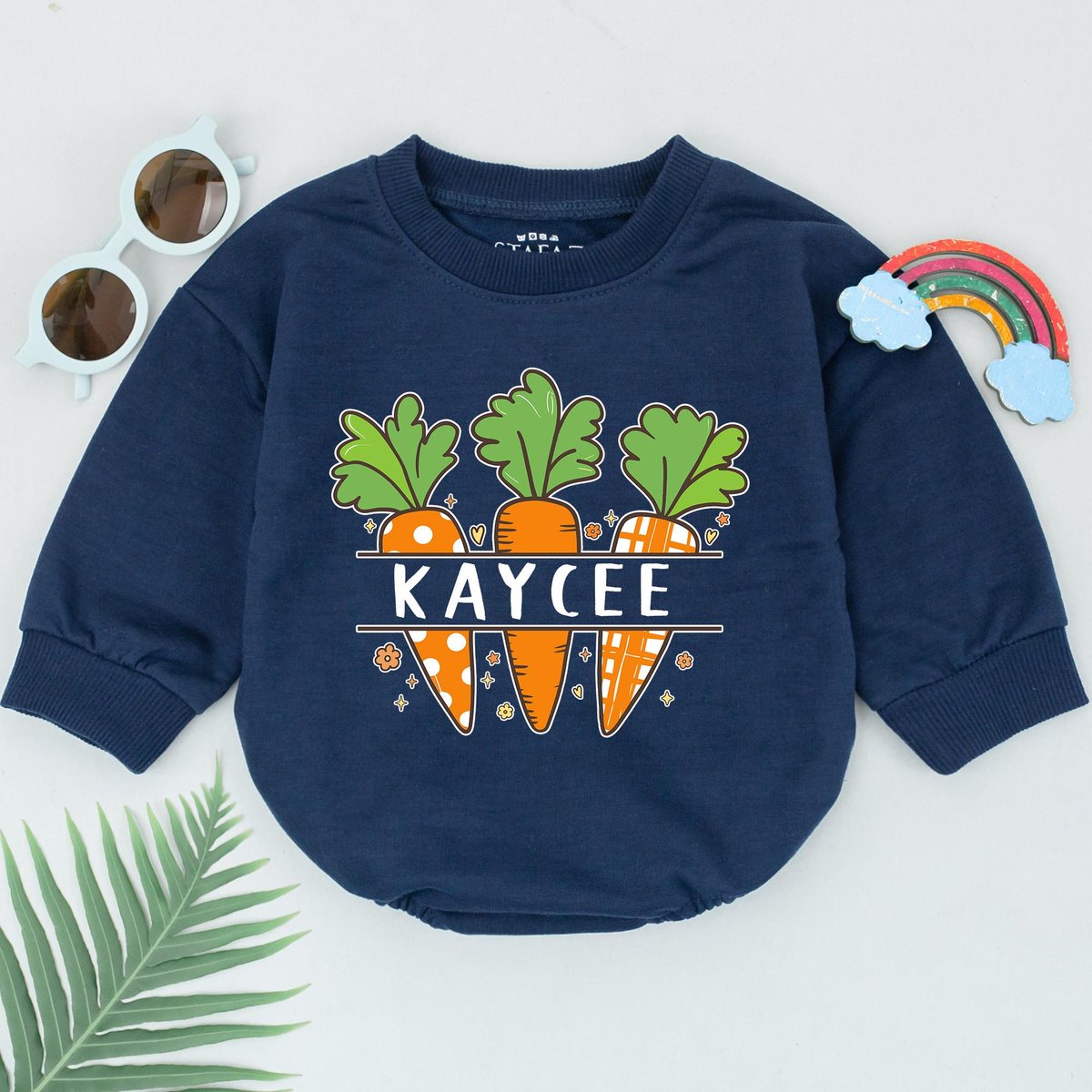 Personalized Name Carrot Easter Romper Bunny Ears Little Bunny Bodysuit Retro Easter Day Outfit Baby