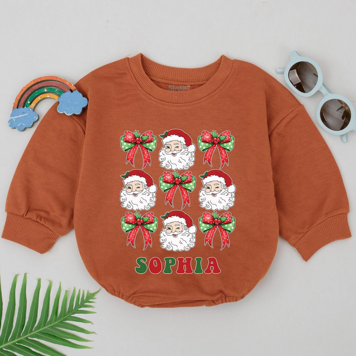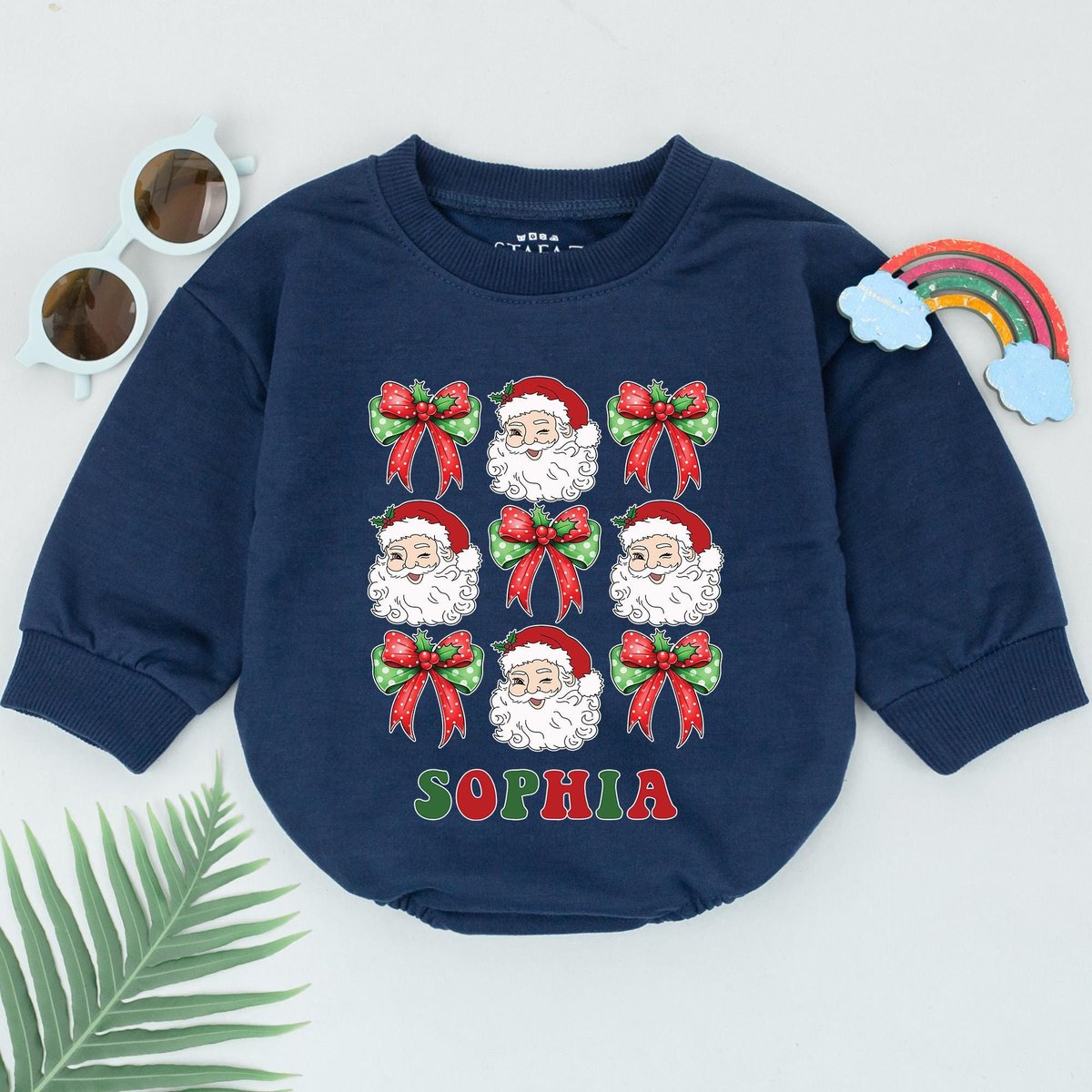 Personalized Name Christmas Romper 1st Christmas Santa Bow Romper Baby Shower Gift Christmas Outfits