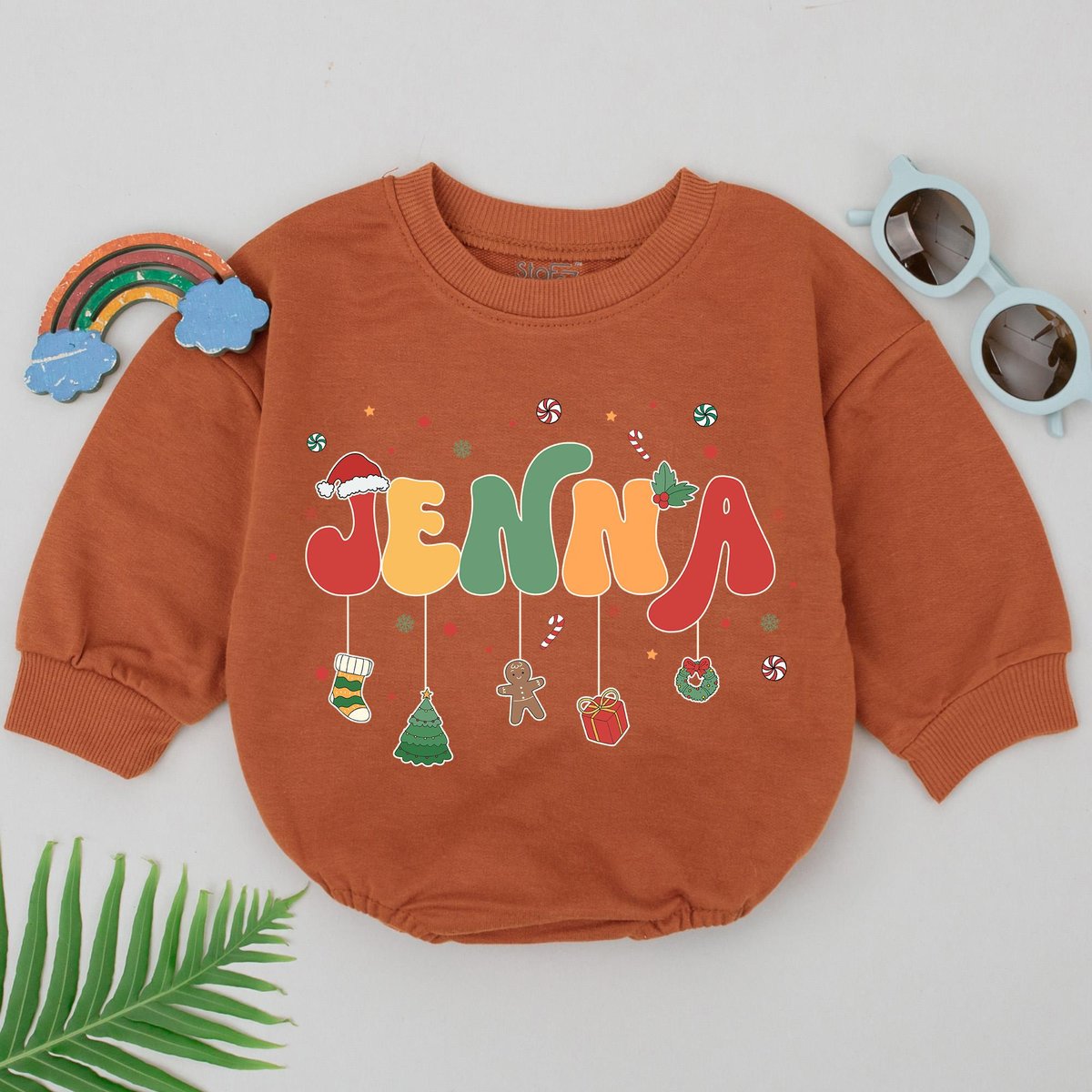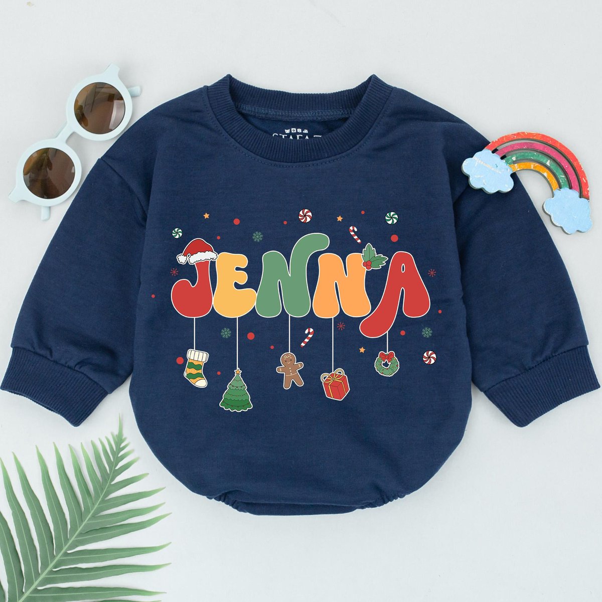 Personalized Name Christmas Romper Christmas Baby Outfits 1st Christmas Romper New Baby Gift Baby Sh