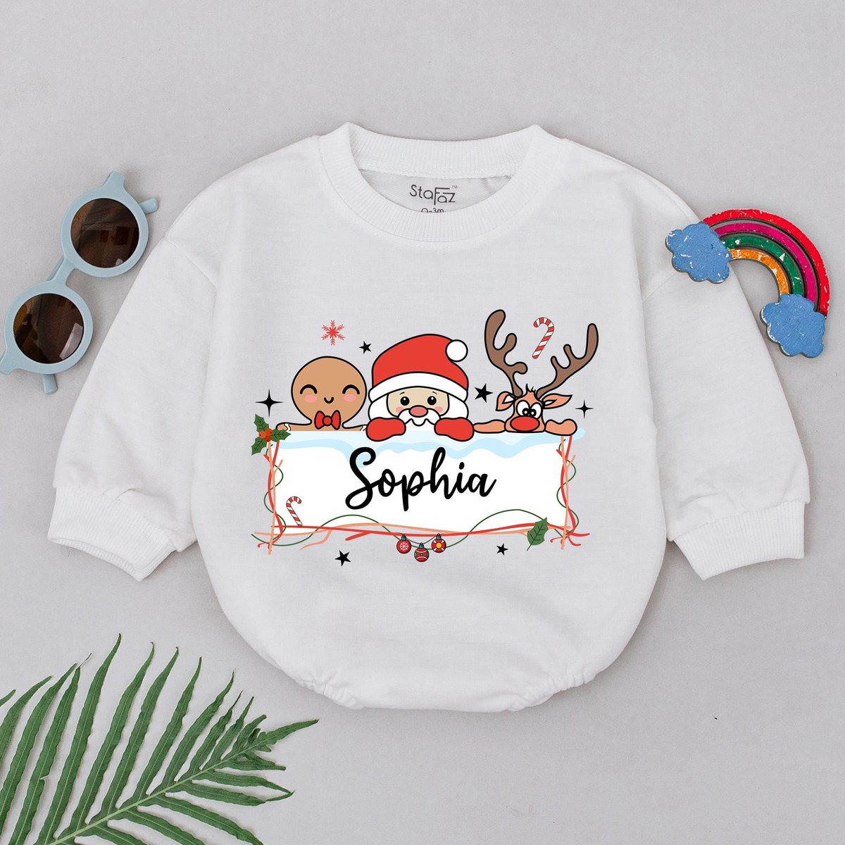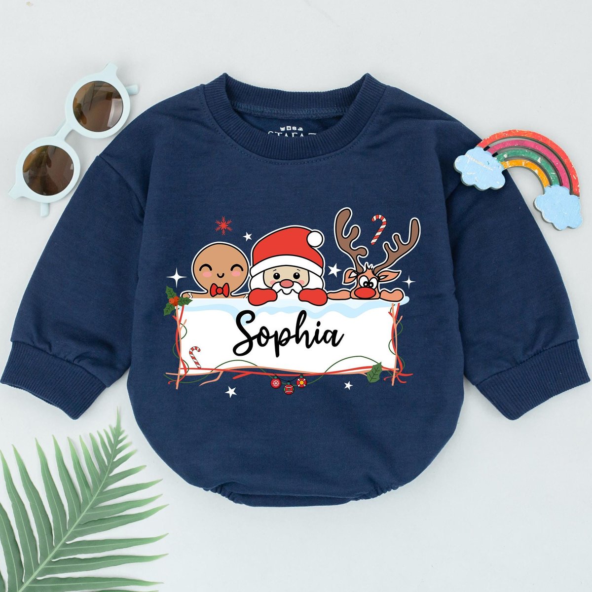 Personalized Name Christmas Romper 1st Christmas Santa Reindeer Baby Romper Baby Shower Gift Christm