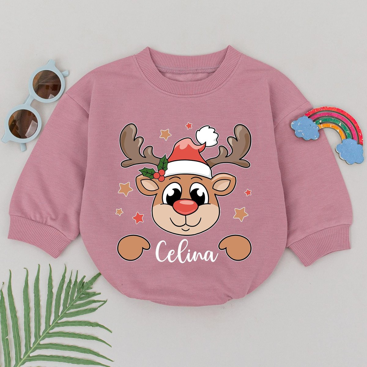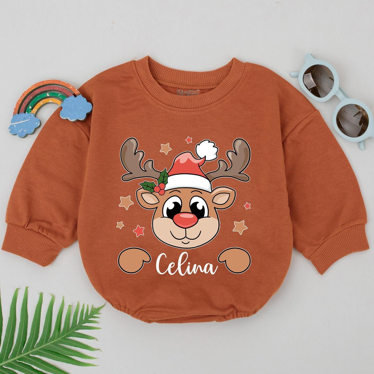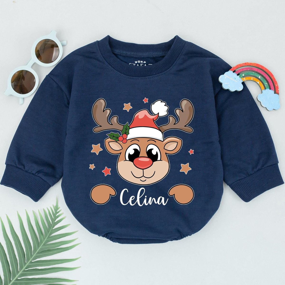 Personalized Name Reindeer Romper 1st Christmas Reindeer Baby Romper Baby Shower Gift Christmas Outf