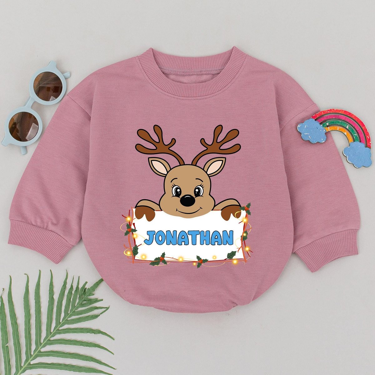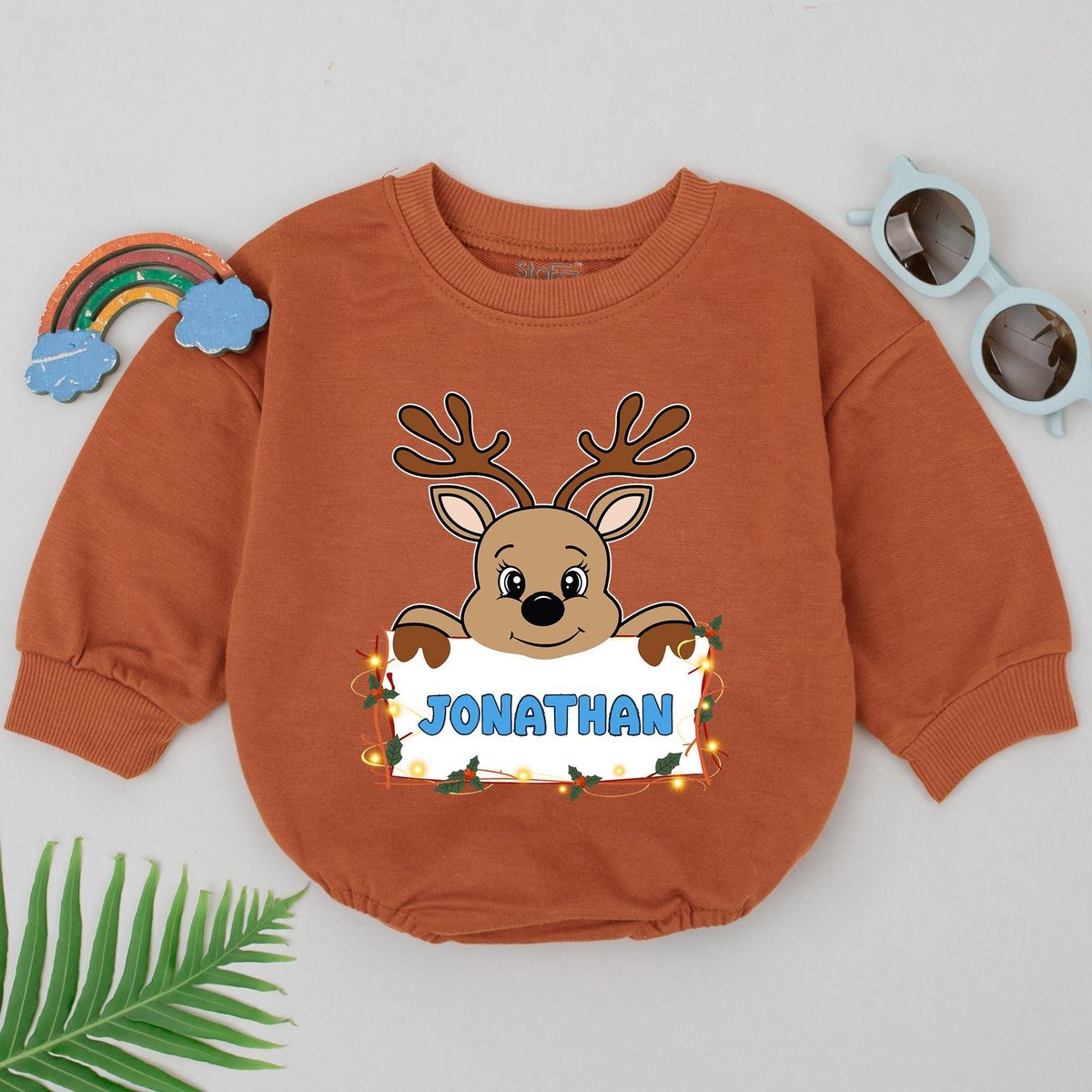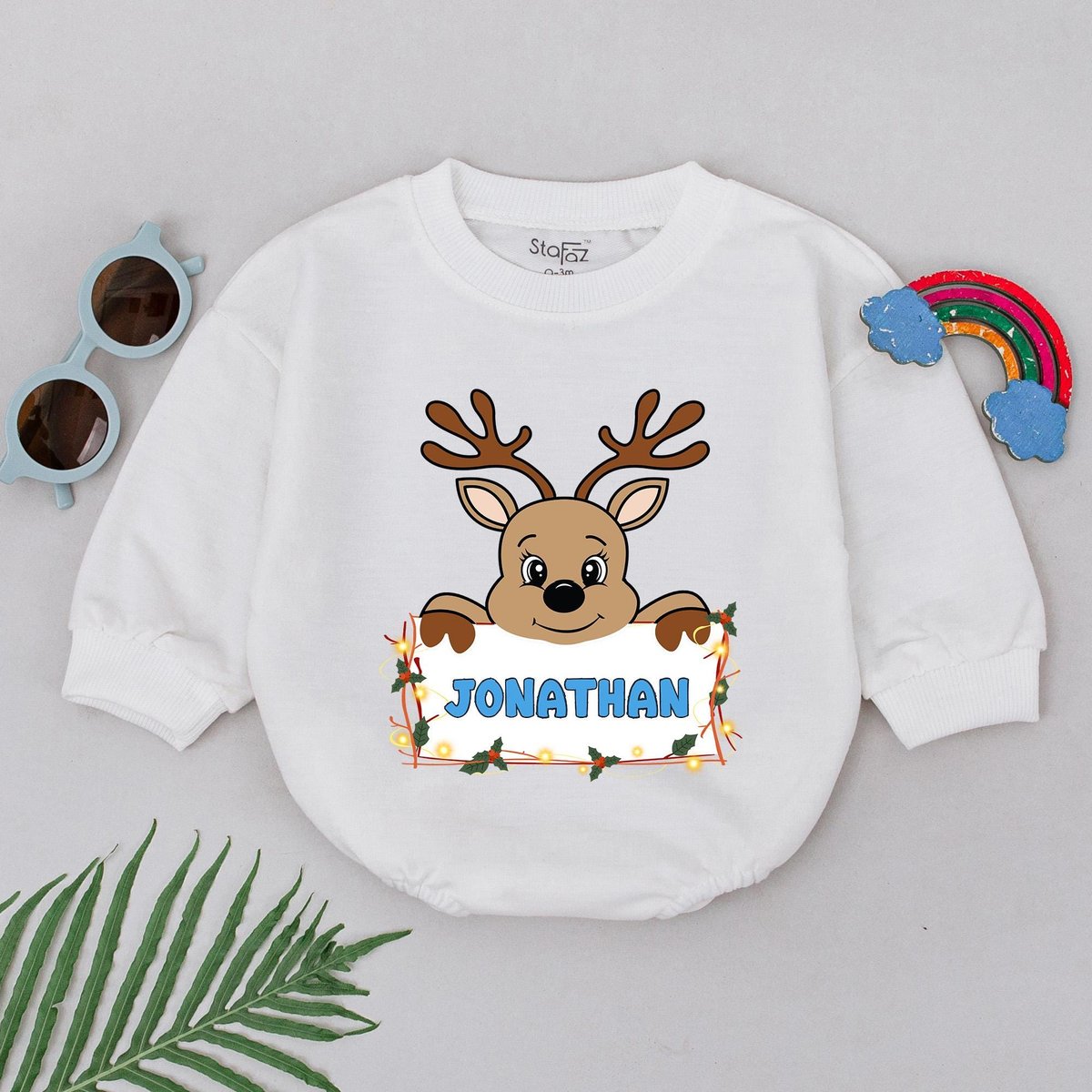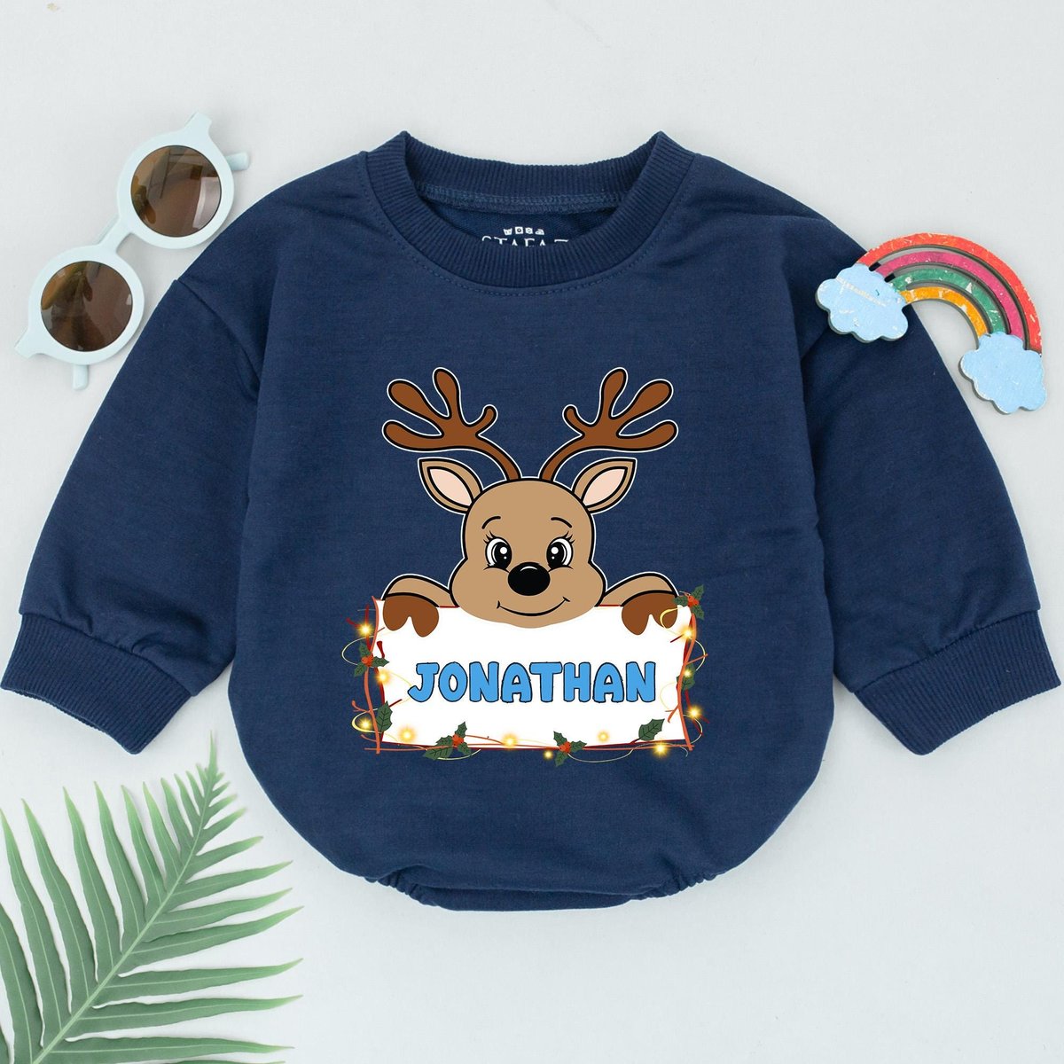 Personalized Name Reindeer Romper 1st Christmas Reindeer Boy Romper Baby Shower Gift Christmas Outfi