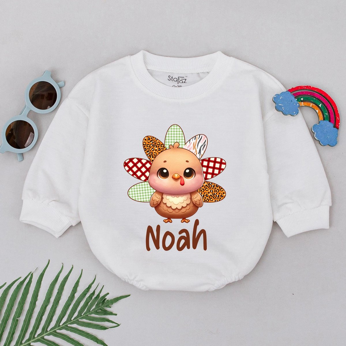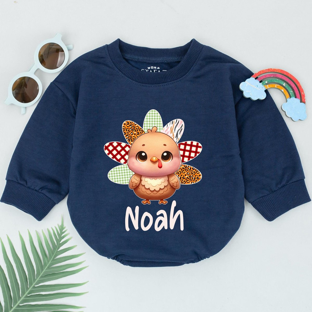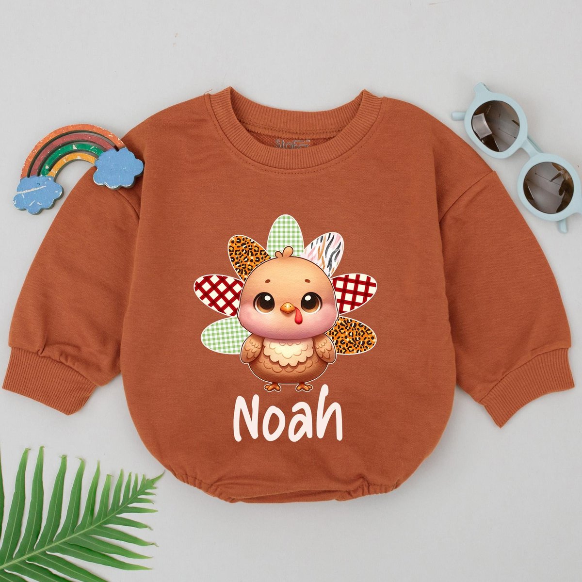 Personalized Name Thanksgiving Romper Turkey Baby Romper 1st Birthday Thanksgiving OutfitFirst Thank