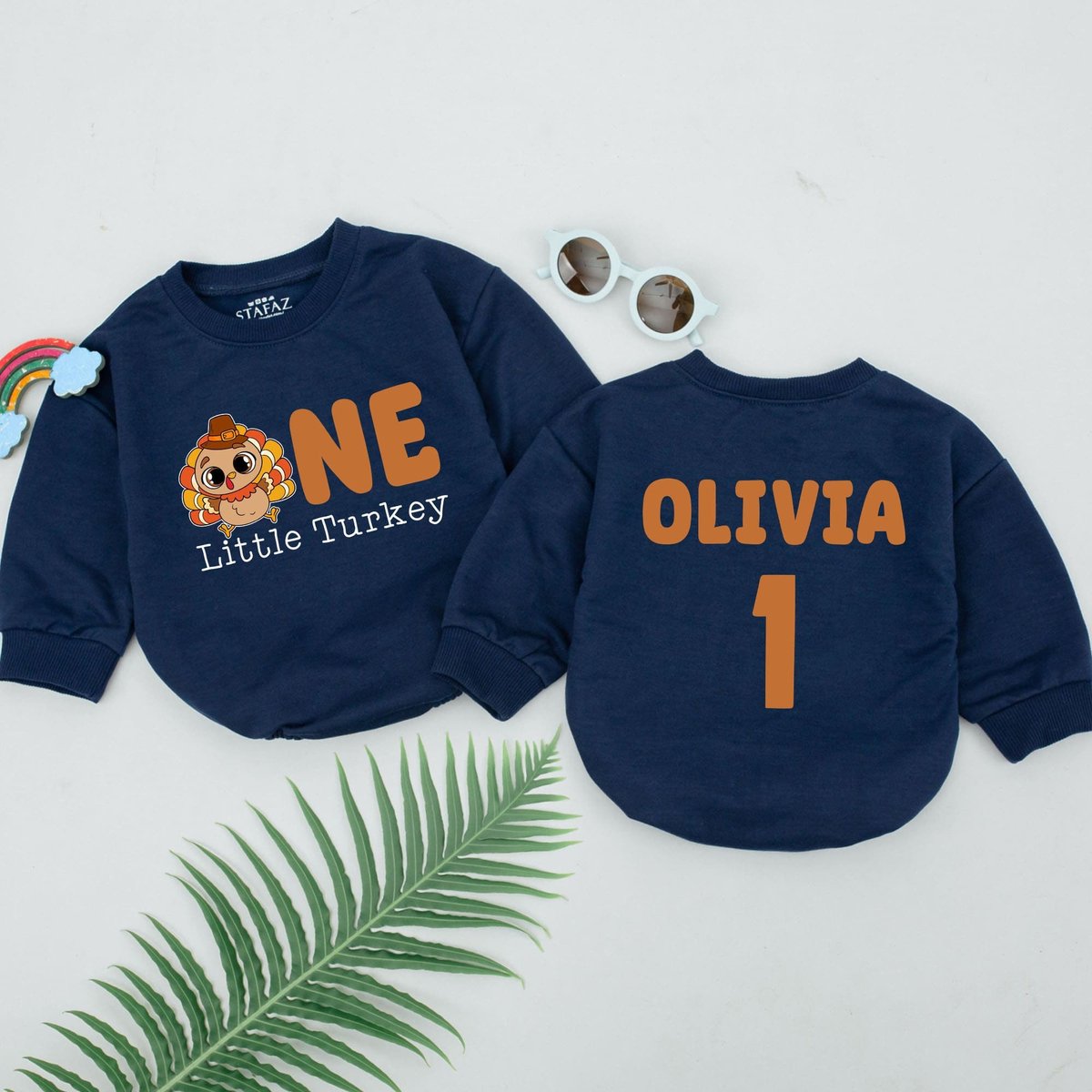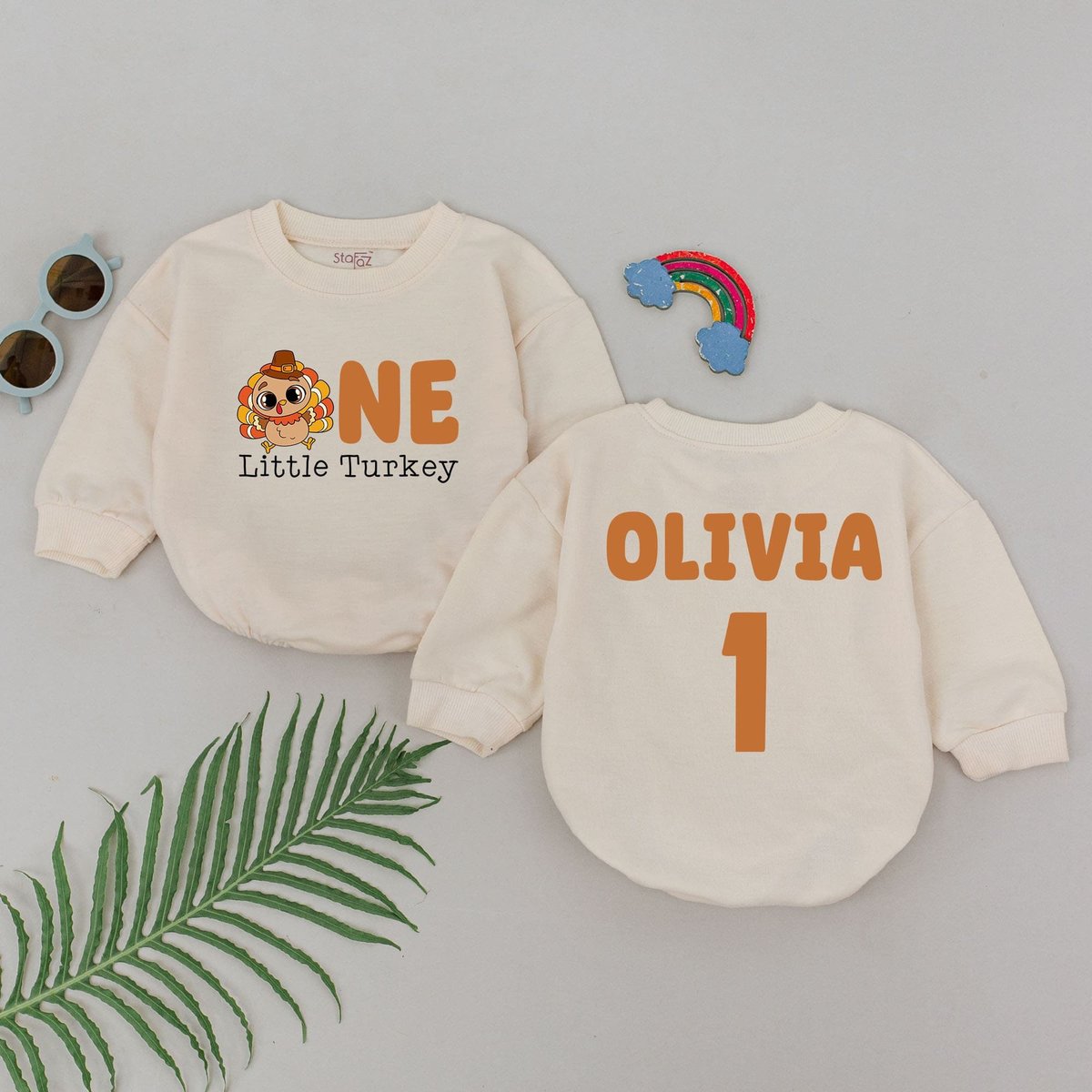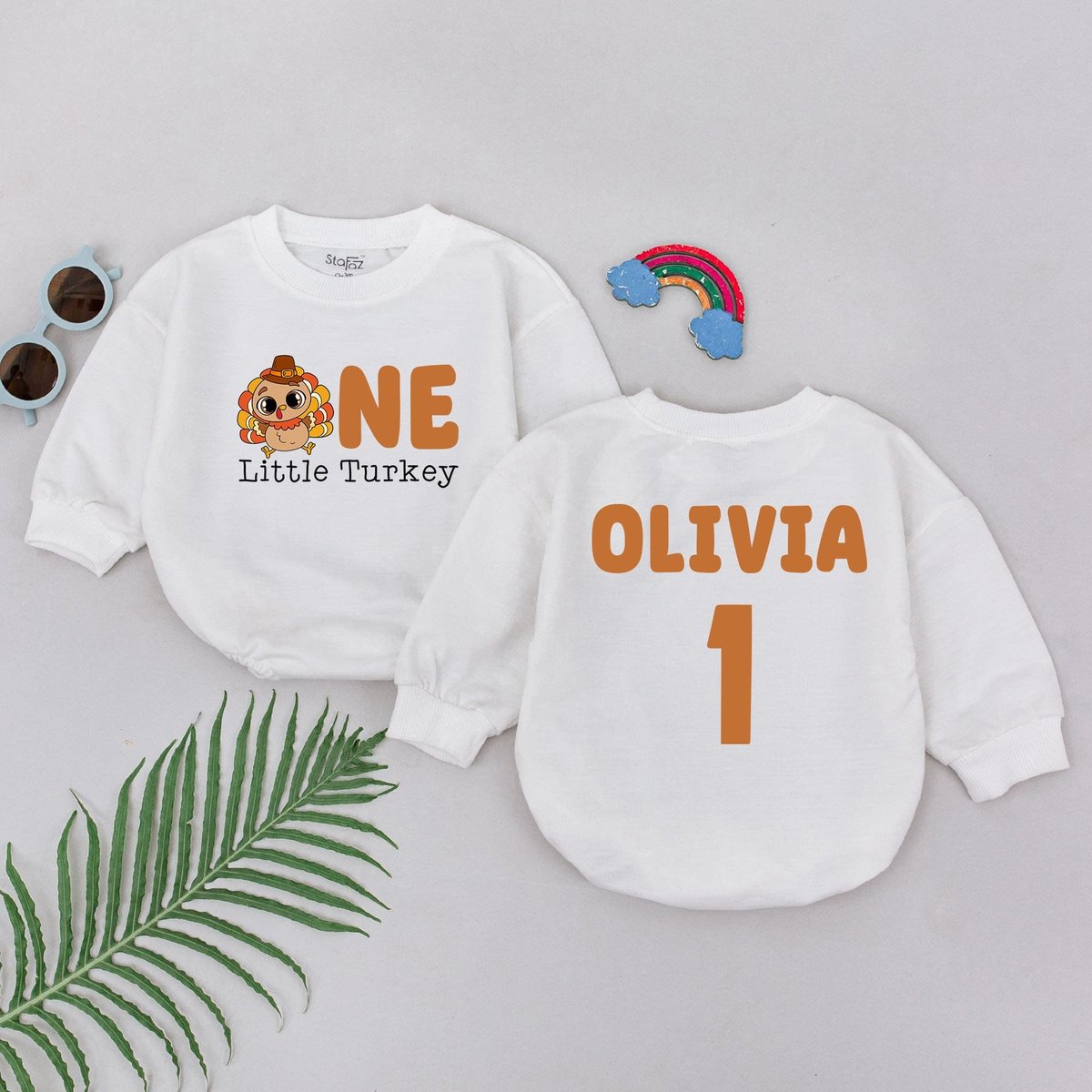 Personalized One Little Turkey Romper Turkey Baby Romper 1st Birthday Thanksgiving Outfit First Than