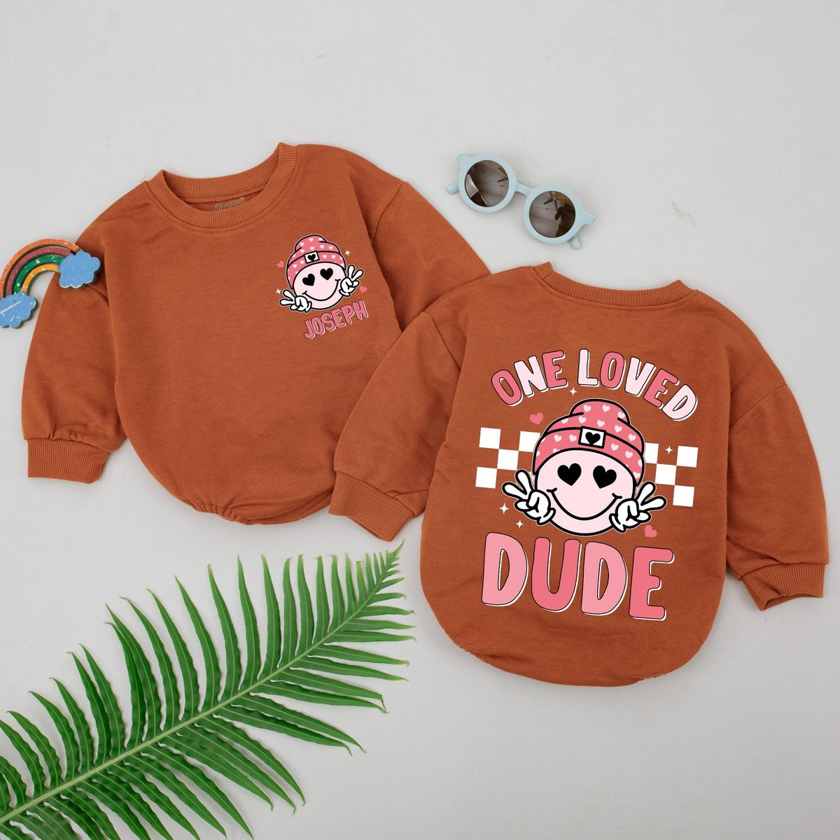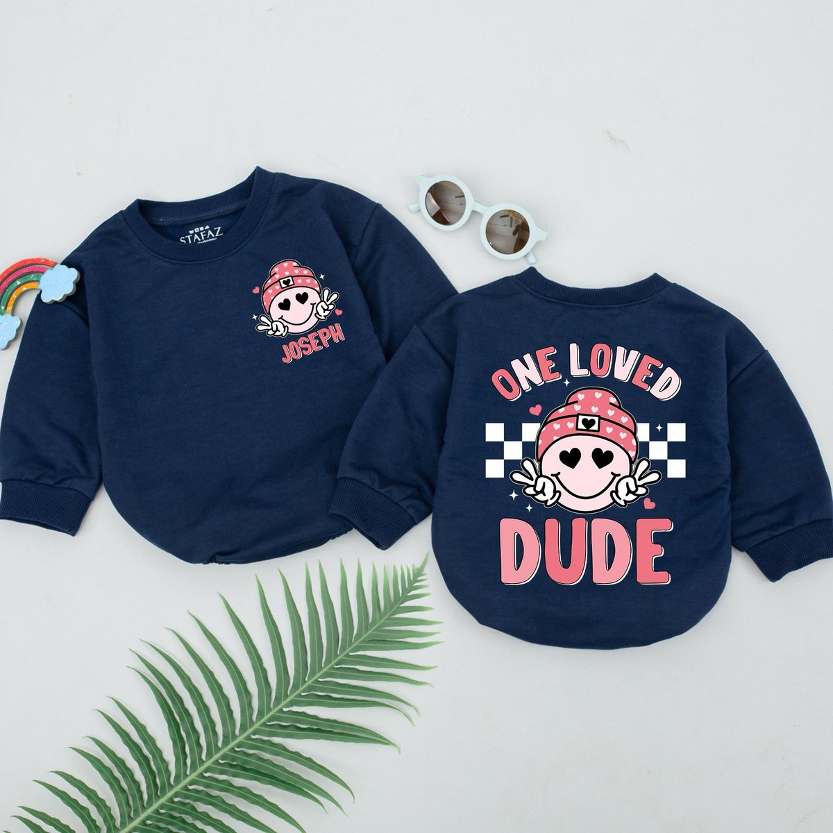 Personalized One Loved Dude Romper Valentine Baby Romper 1st Valentines For Girl Little Valentine Ki