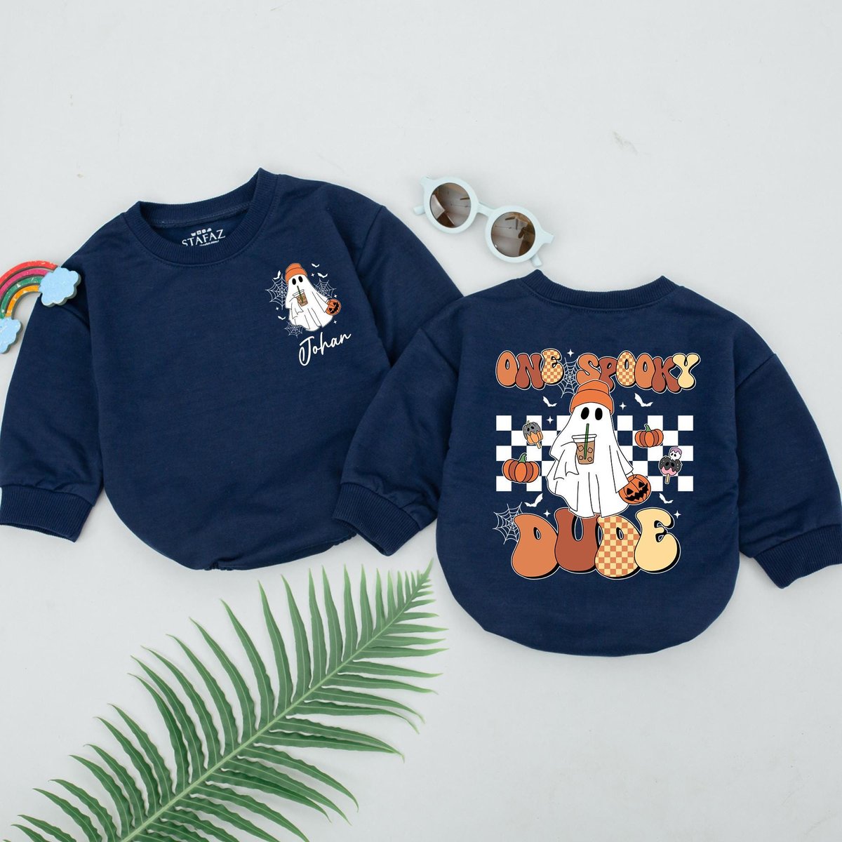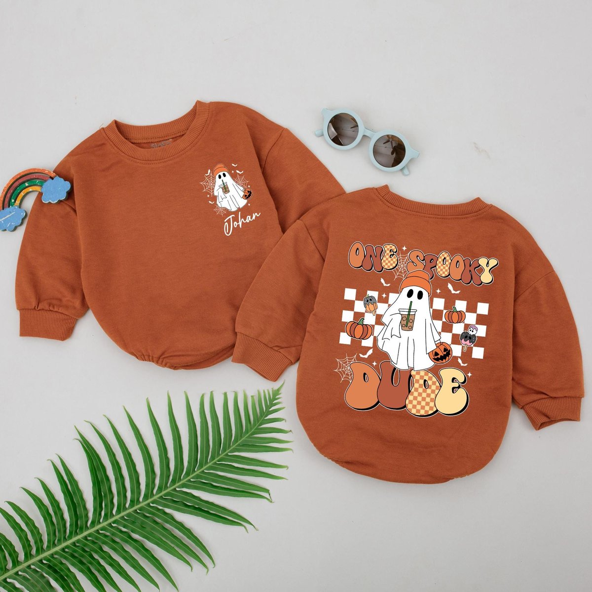 Personalized One Spooky Dude Romper Baby Boo Boys Outfits First Halloween Baby Romper Baby Shower Gi