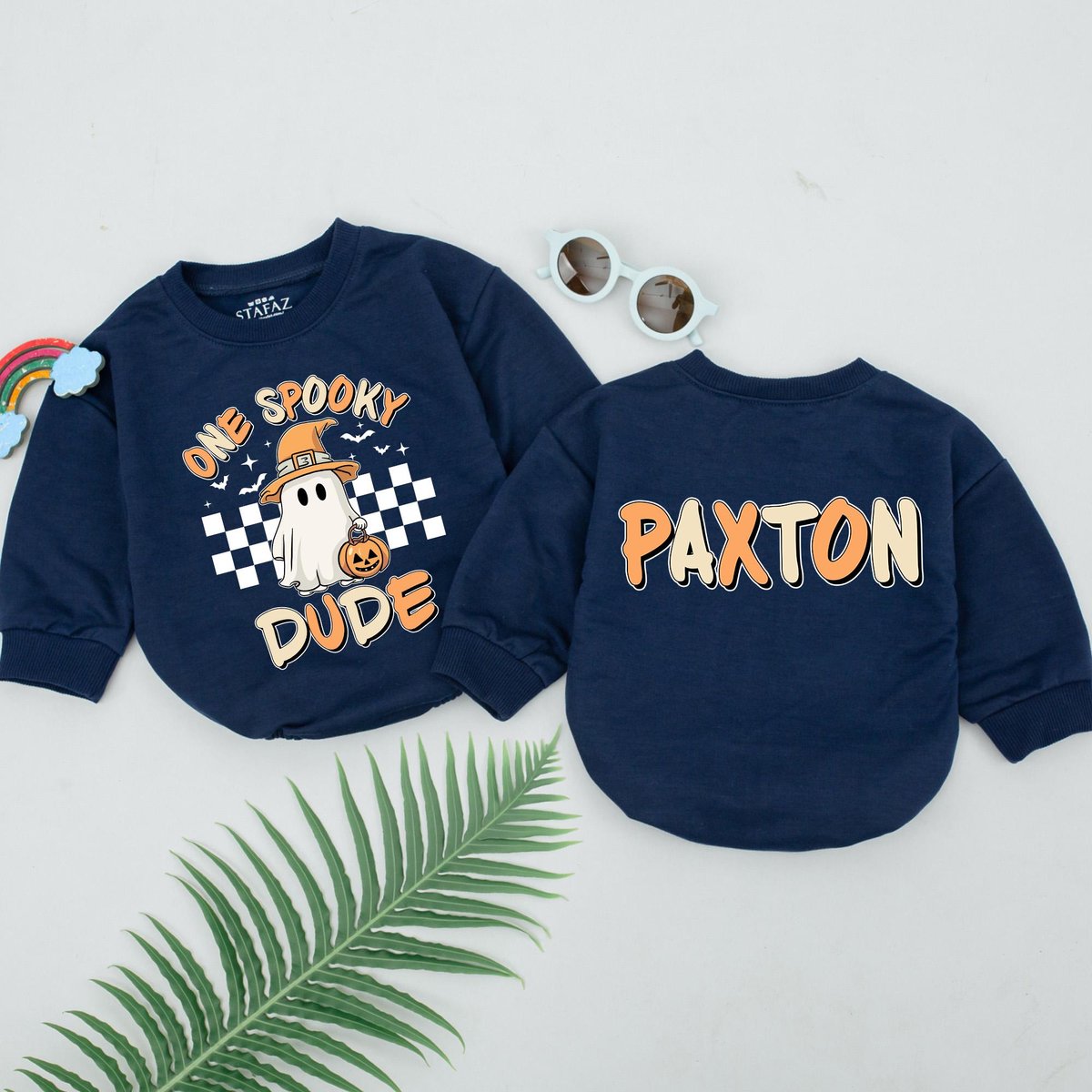 Personalized One Spooky Dude Romper Little Boo Outfits First Halloween Baby Romper Baby Shower Gift
