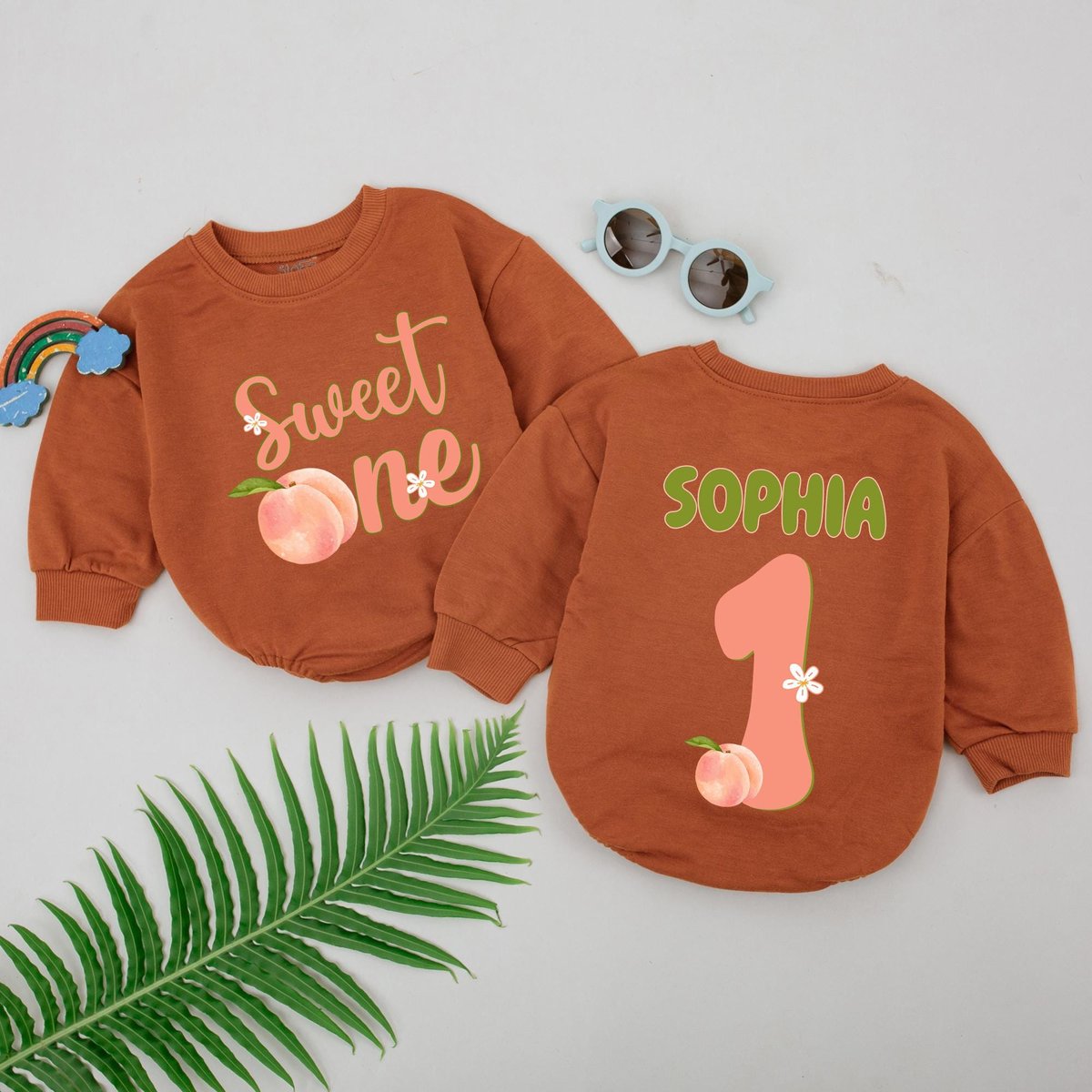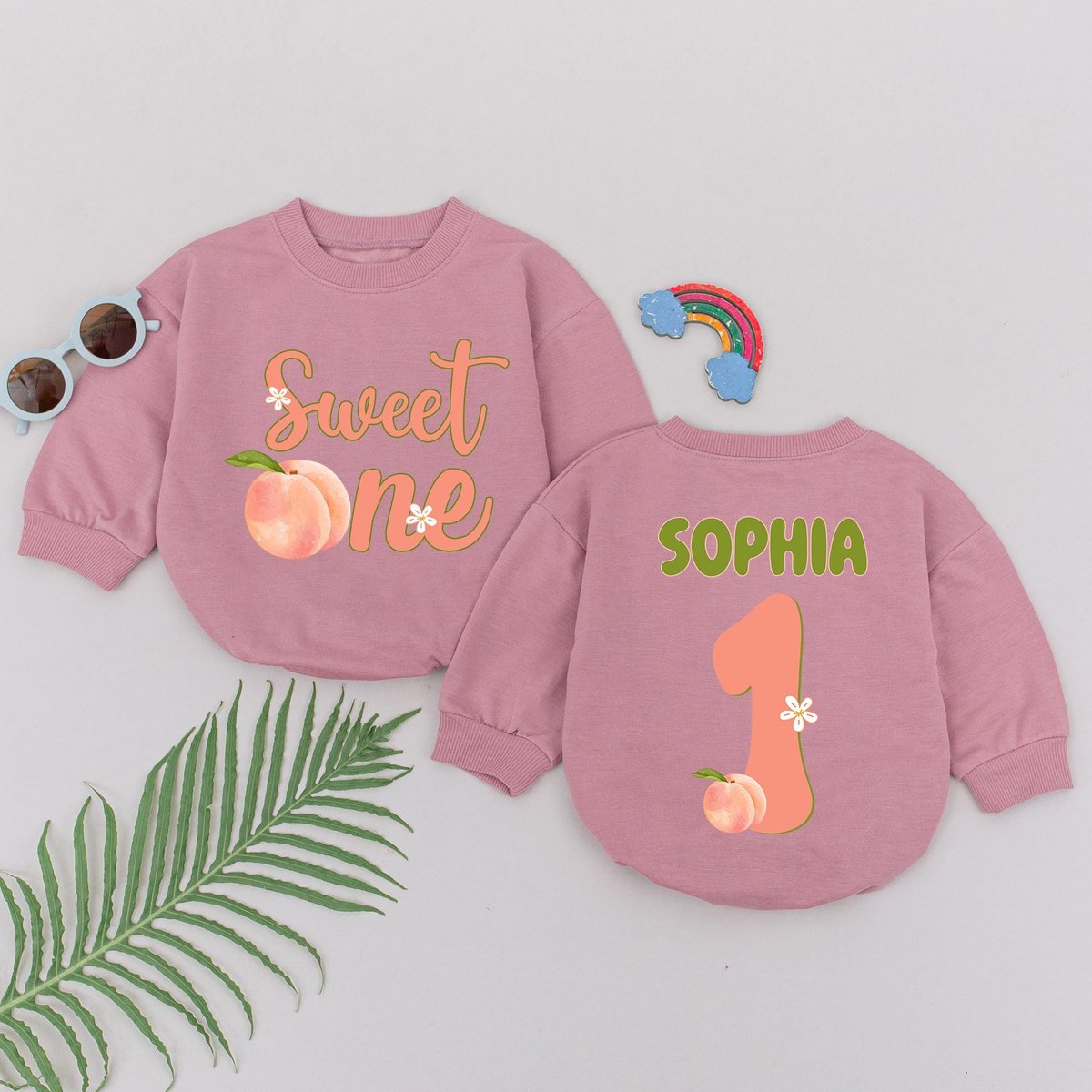 Personalized One Sweet Peach Birthday Romper First Birthday Girl Outfit Peach 1st Birthday Bodysuit