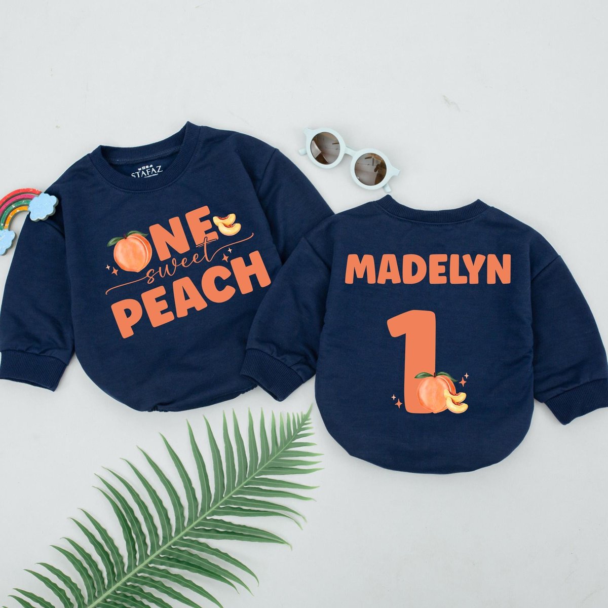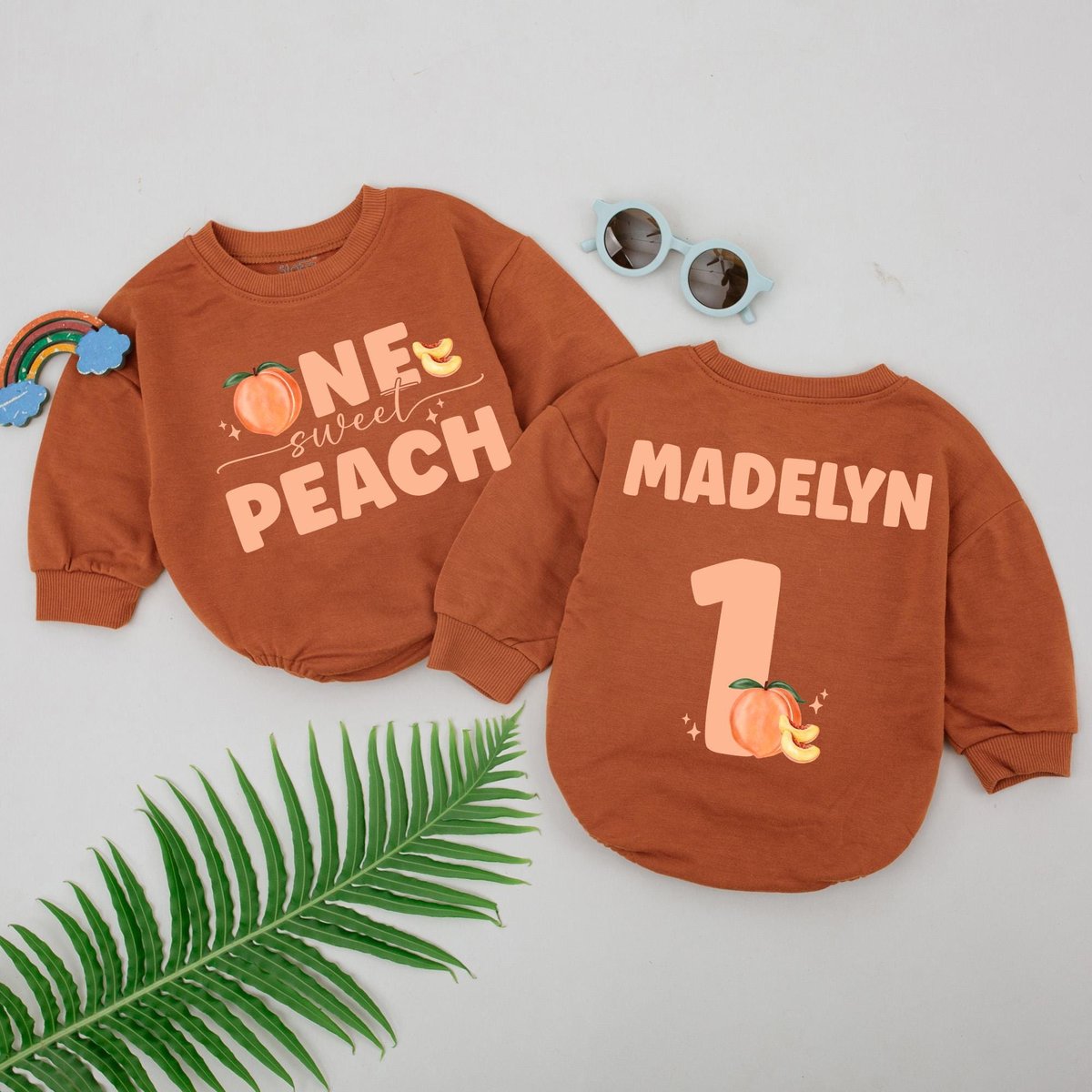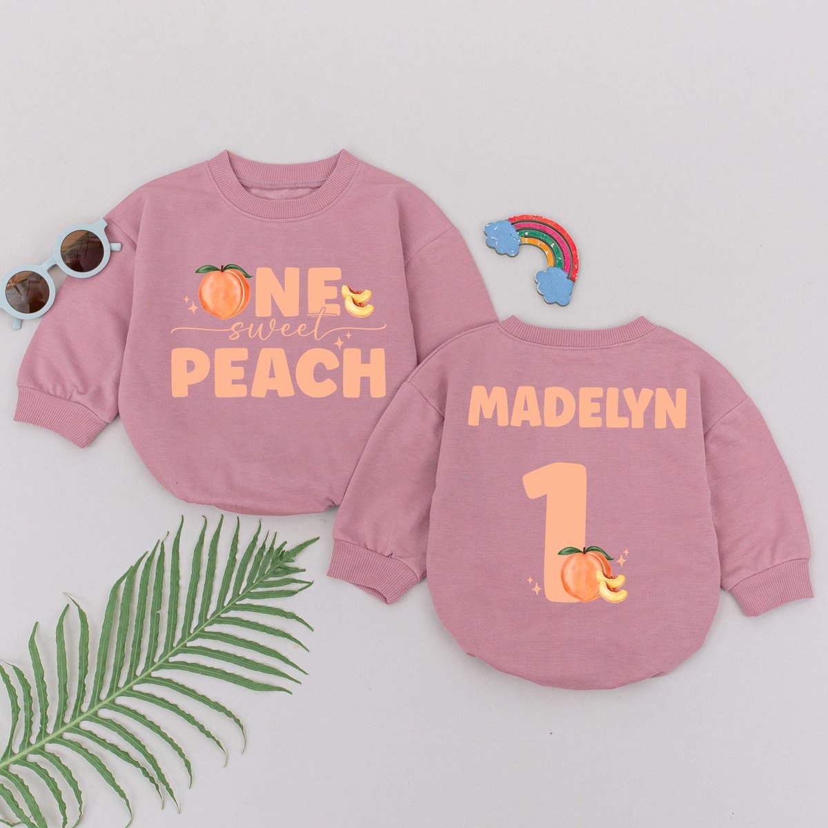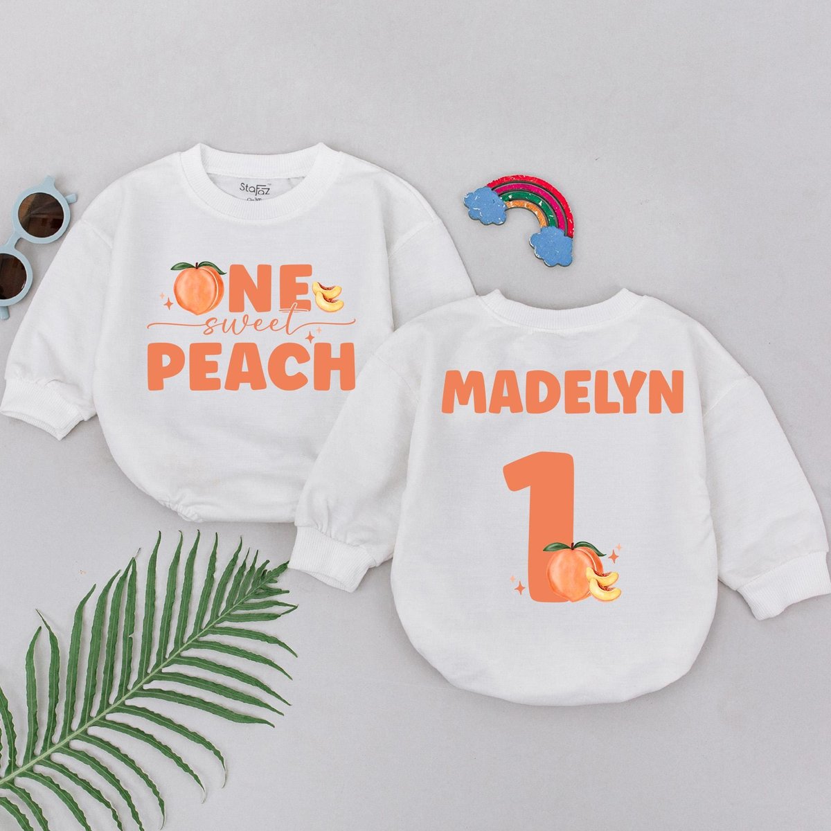 Personalized One Sweet Peach Romper Peach 1s Birthday Bodysuit For Girl Fruit Theme Baby Shower Gift