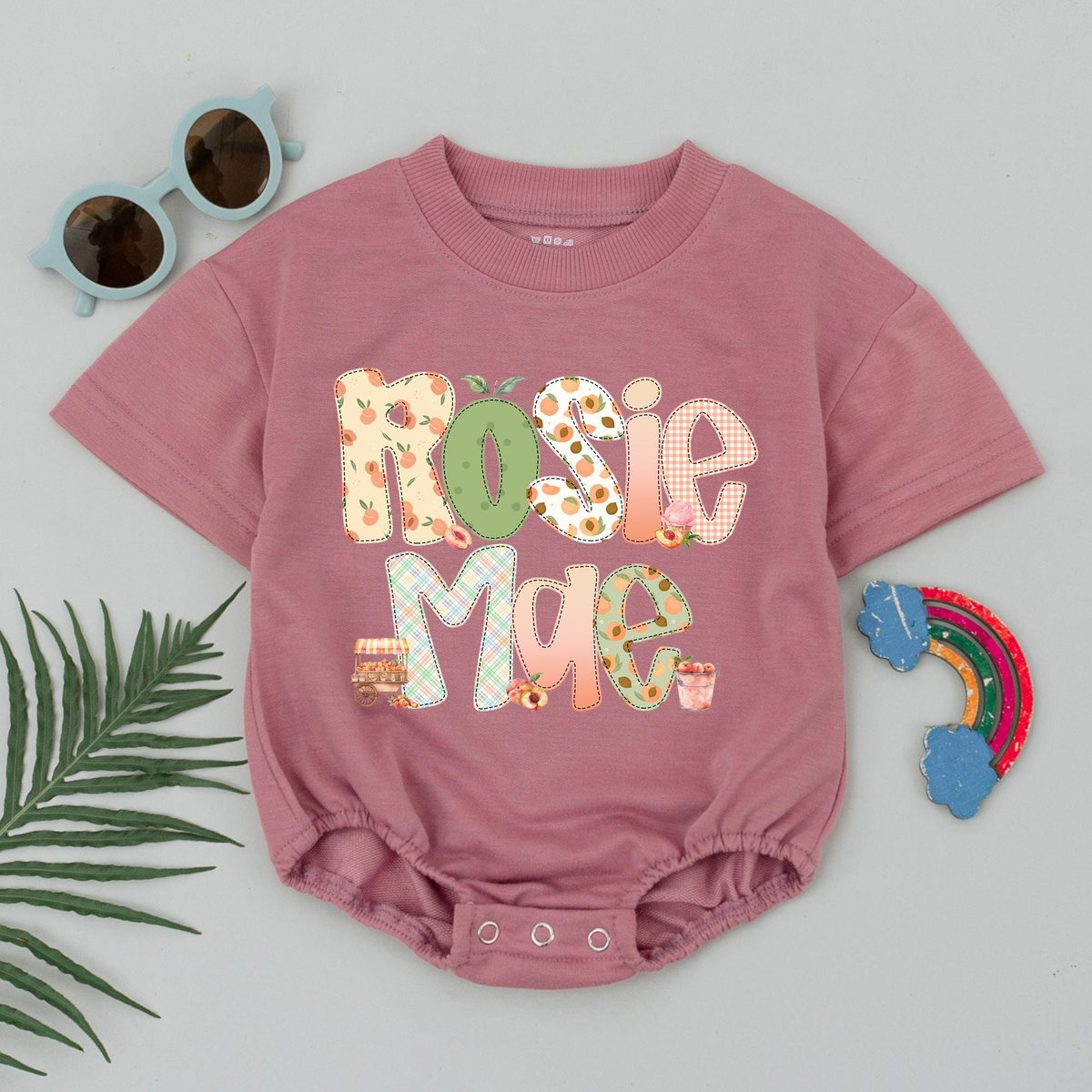 Personalized Peach Baby Bubble Romper Custom Name Bodysuit Birthday Girl Clothes Fruit Newborn Outfi