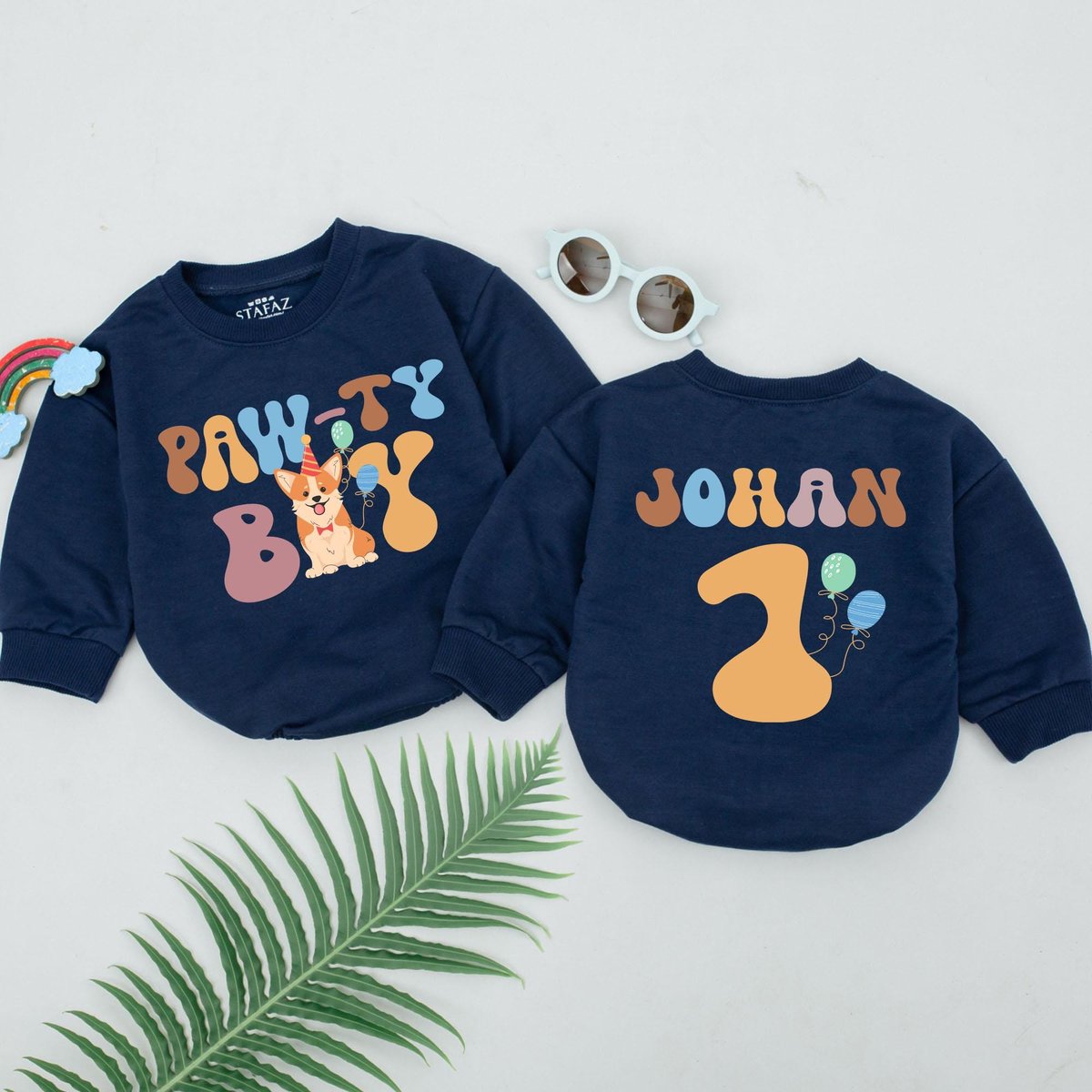 Personalized Paw-ty Boy Birthday Romper Dog Birthday Romper Baby Shower Gift Custom Puppy Baby Birth