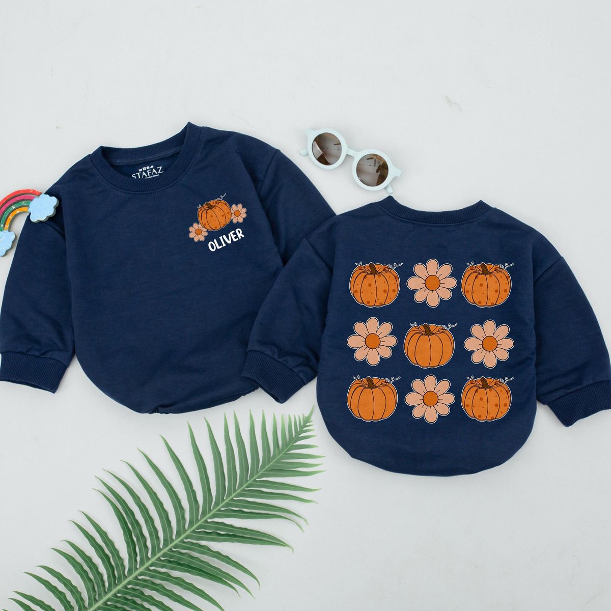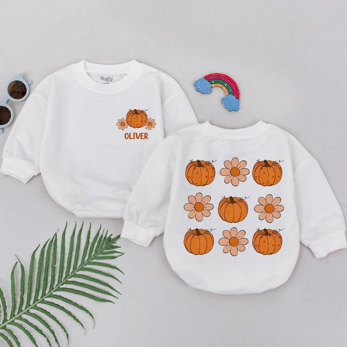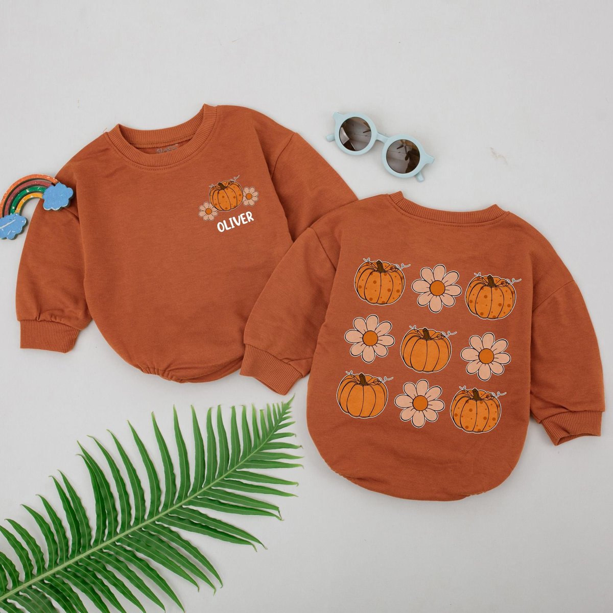 Personalized Retro Pumpkin Romper Custom Name Fall Outfits Baby Shower Gift Pumpkin Spice Outfit New