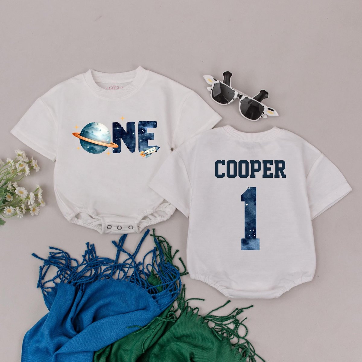 Personalized Space Birthday Family T-Shirt First Trip Around The Sun 1st Birthday Boy One Candle Fam