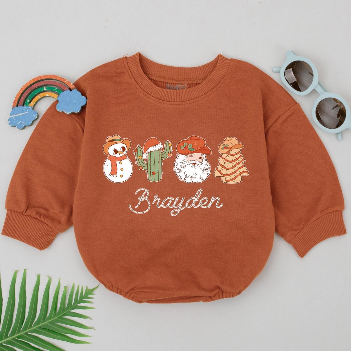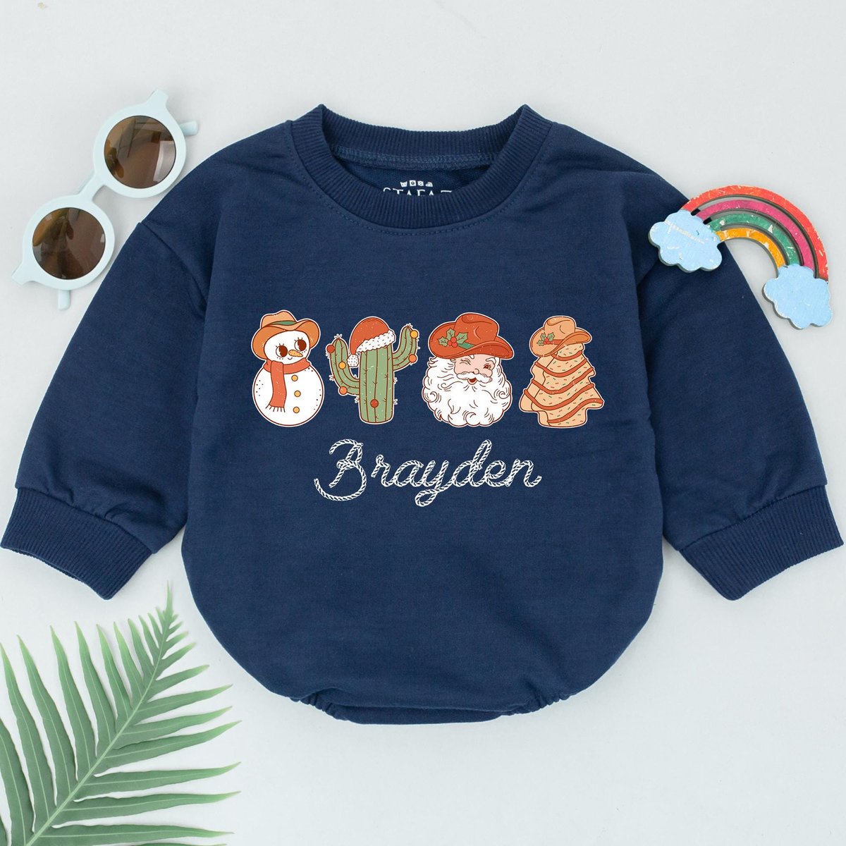 Personalized Western Christmas Romper 1st Christmas Bodysuit Christmas Outfits Baby Xmas Gift Baby S
