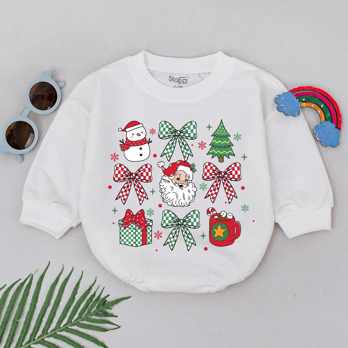 Retro Christmas Baby Romper Christmas Santa Outfit 1st Christmas Baby Romper Baby Shower Gift Newbor